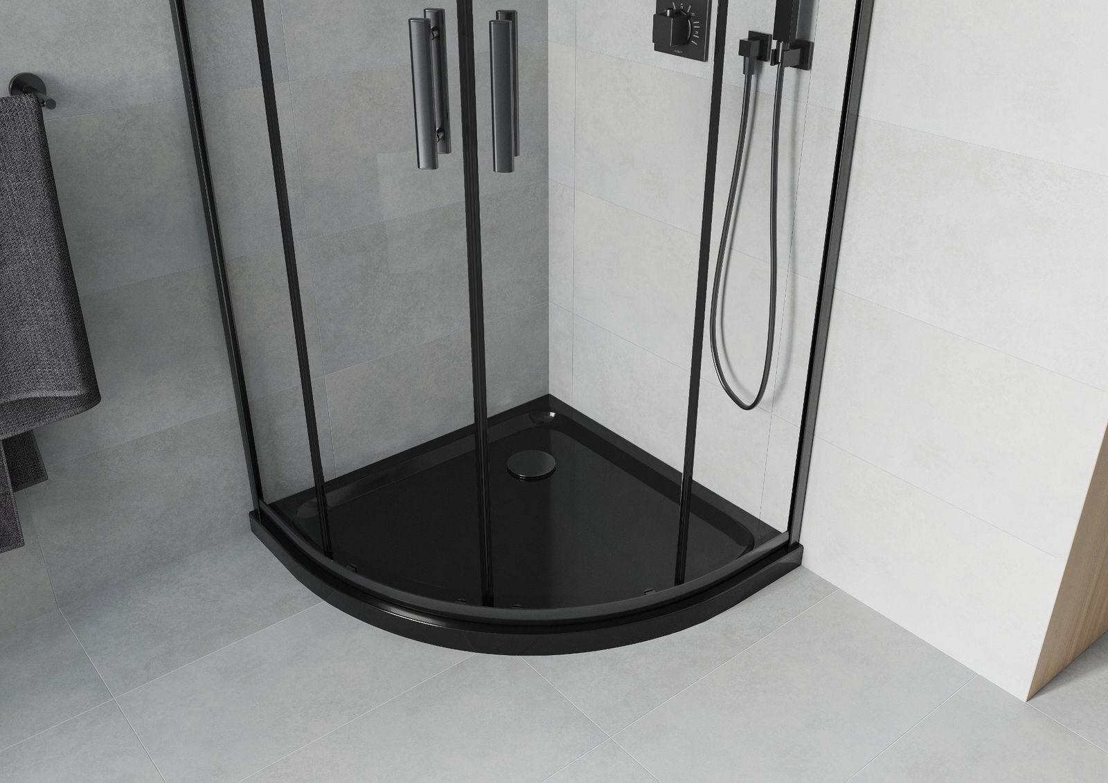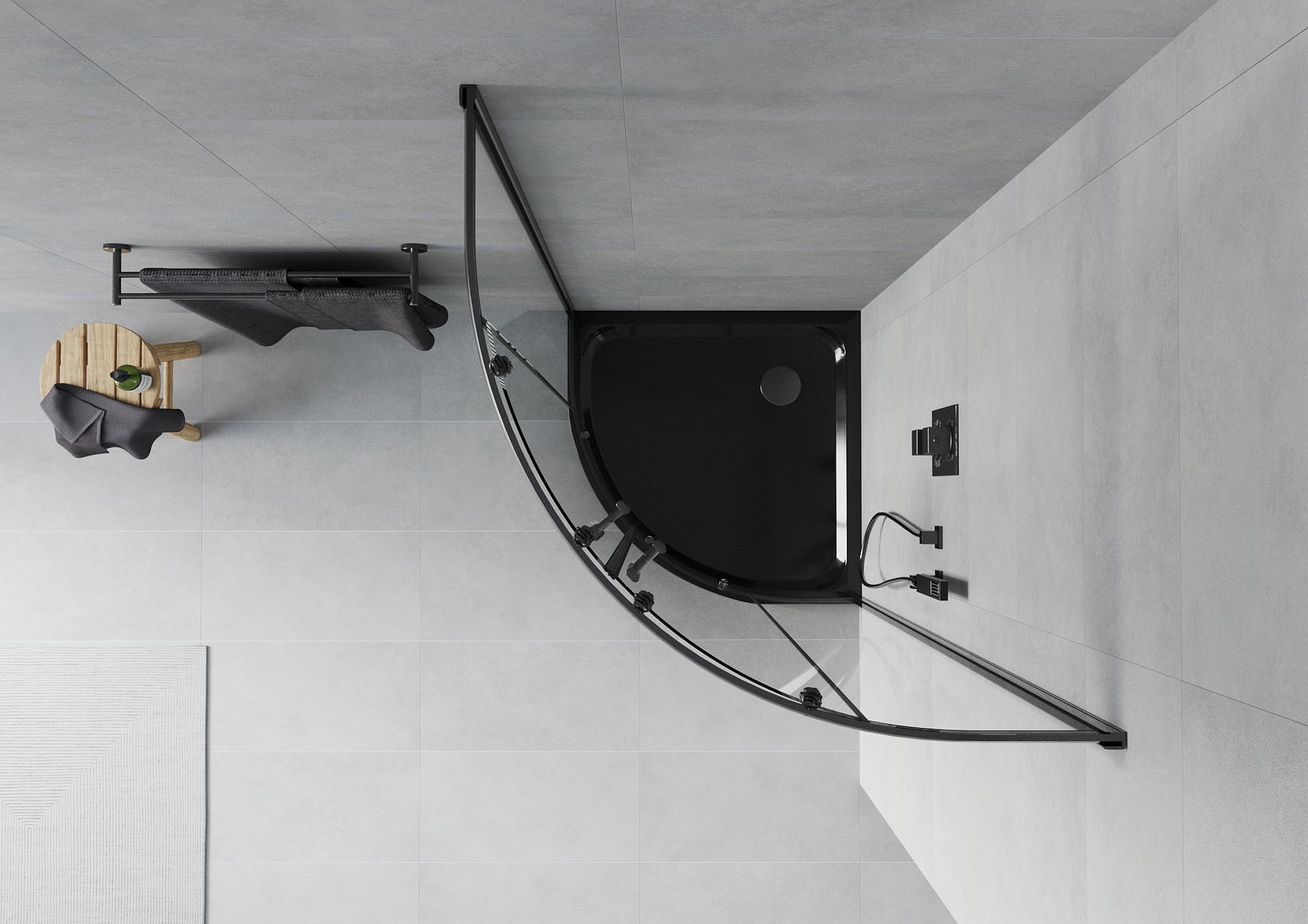 Mexen Rio pusapvalė dušo kabina 90 x 90 cm, skaidri, juoda + plokščia dušo padėklas, juoda - 863-090-090-70-00-4170B