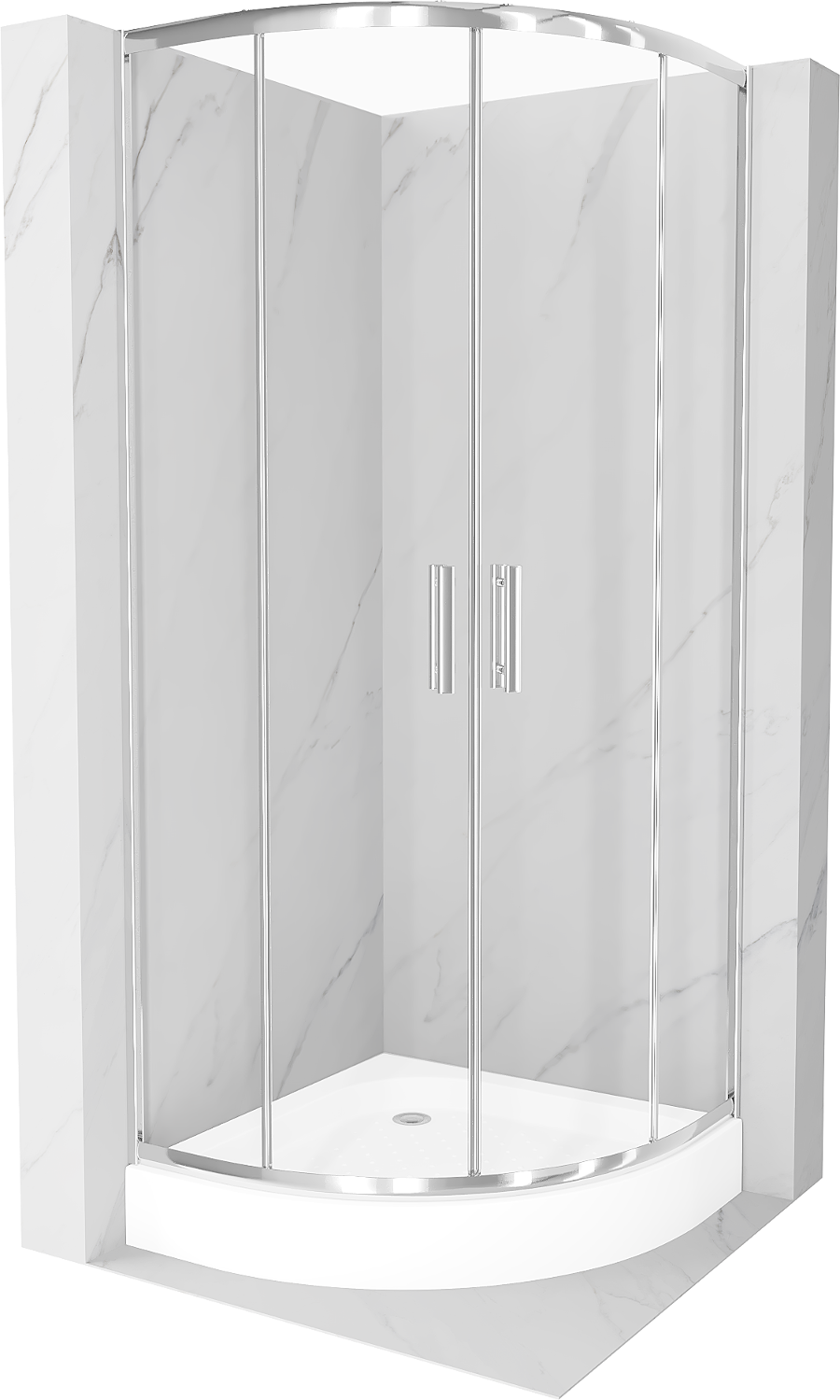 Mexen Rio pusapvalė dušo kabina 70 x 70 cm, skaidri, chromuota + dušo padėklas, baltas - 863-070-070-01-00-4710