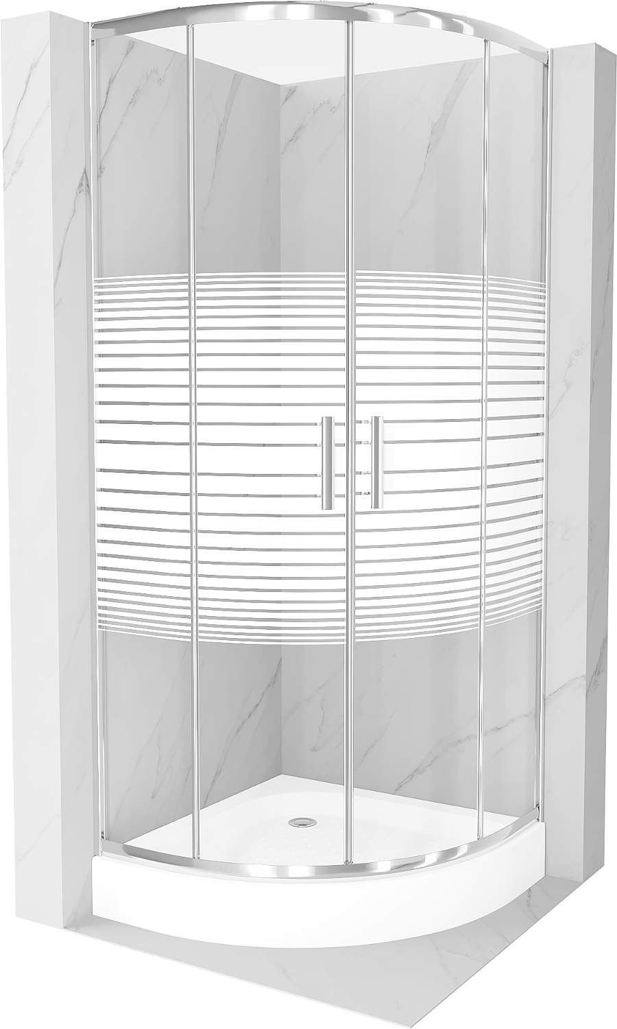 Mexen Rio pusapvalė dušo kabina 80 x 80 cm, baltos juostos, chromuota + padėklas, baltas - 863-080-080-01-20-4710
