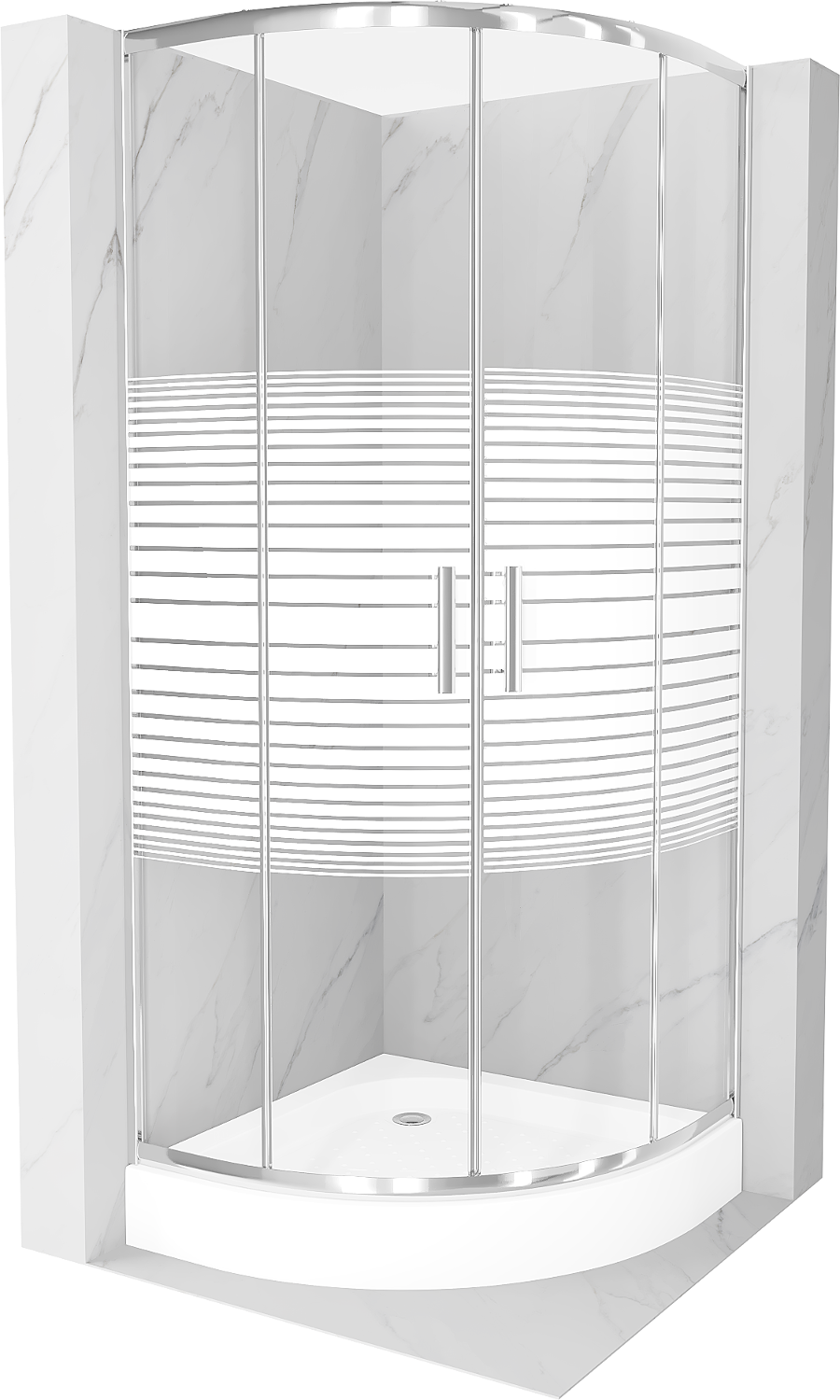 Mexen Rio pusapvalė dušo kabina 90 x 90 cm, baltos juostos, chromas + padėklas, baltas - 863-090-090-01-20-4710