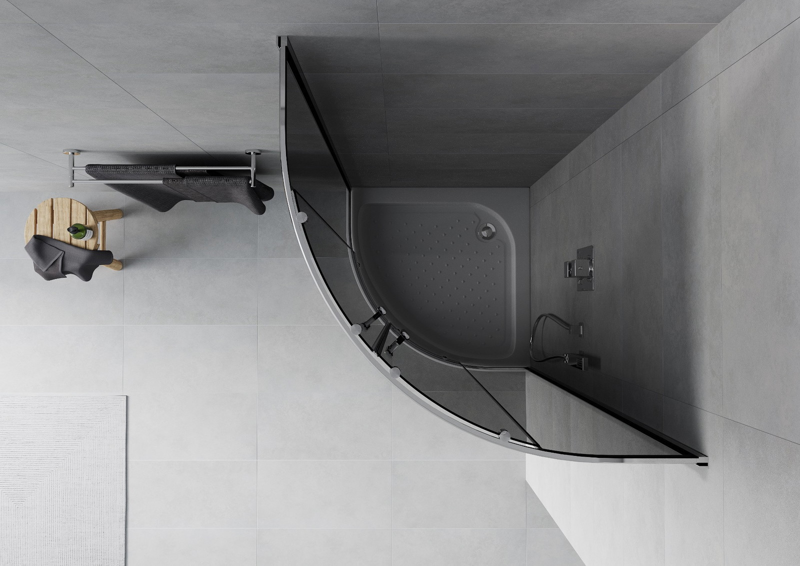 Mexen Rio pusapvalė dušo kabina 70 x 70 cm, grafitas, chromas + padėklas, baltas - 863-070-070-01-40-4710