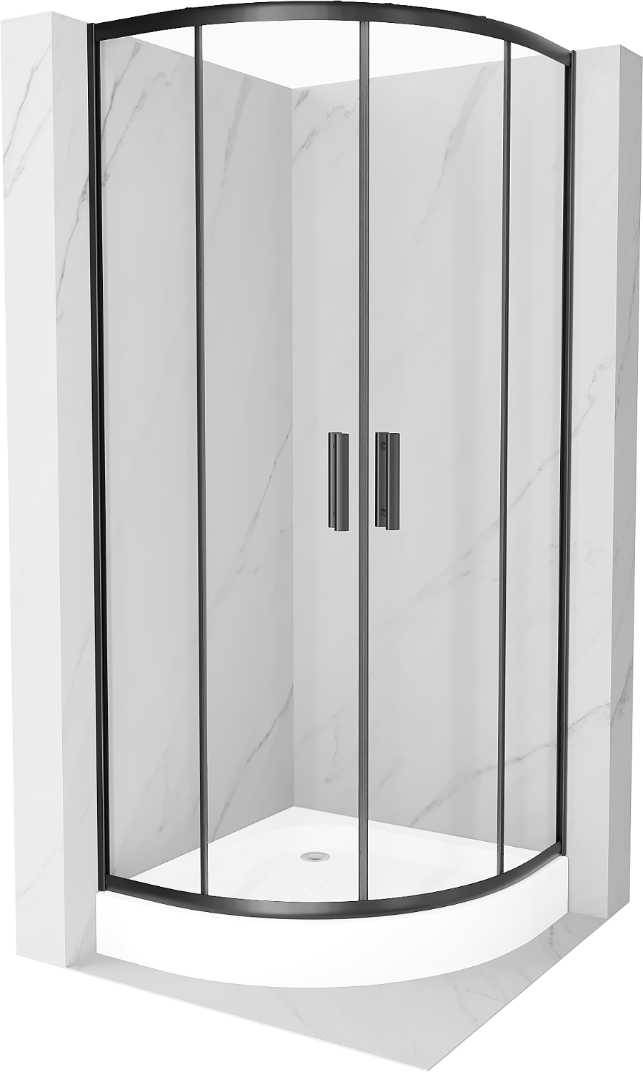 Mexen Rio pusapvalė dušo kabina 70 x 70 cm, skaidri, juoda + padėklas, baltas - 863-070-070-70-00-4710