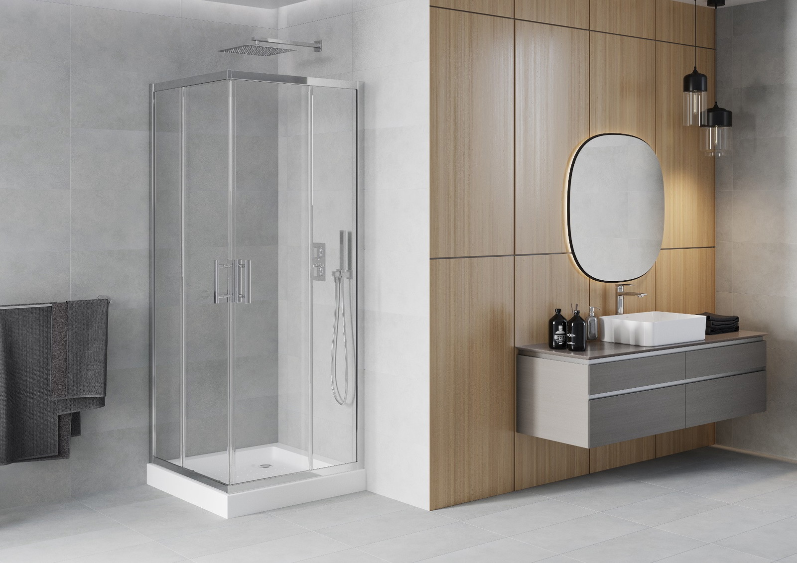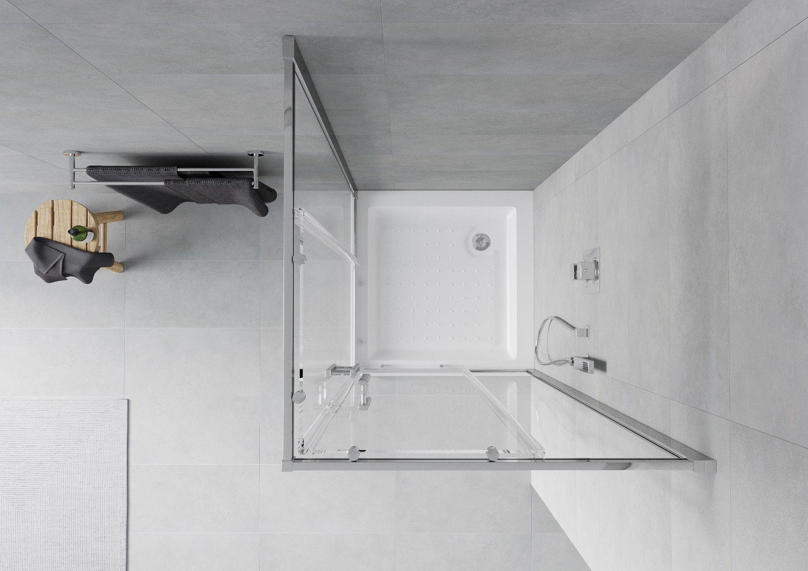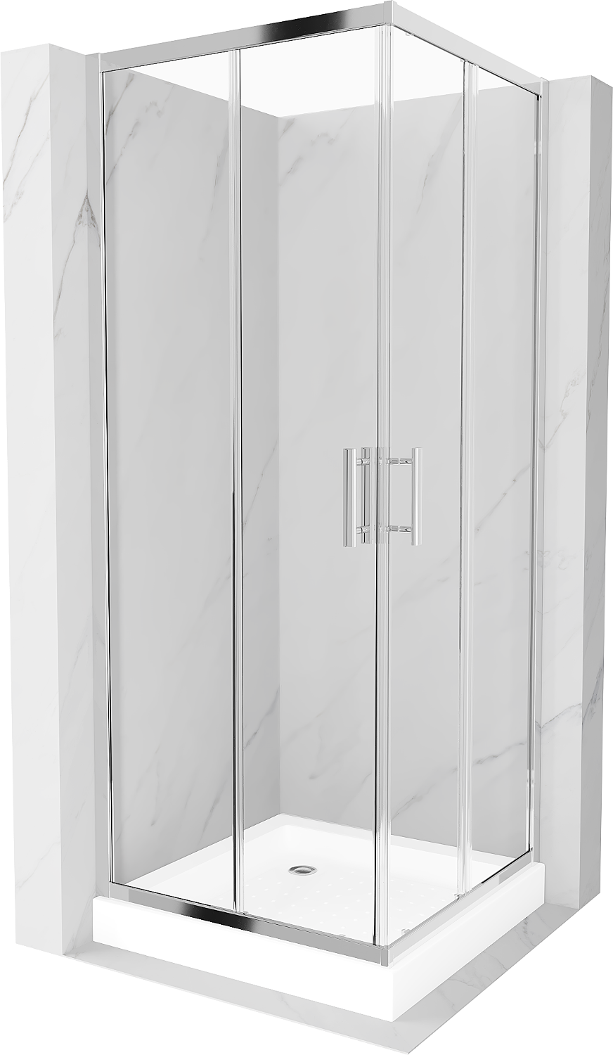 Mexen Rio kvadratinė dušo kabina 80 x 80 cm, skaidri, chromuota + padėklas, baltas - 860-080-080-01-00-4510