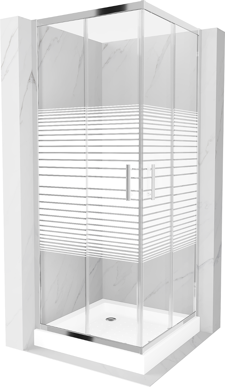 Mexen Rio kvadratinė dušo kabina 80 x 80 cm, baltos juostos, chromas + dušo padėklas, baltas - 860-080-080-01-20-4510