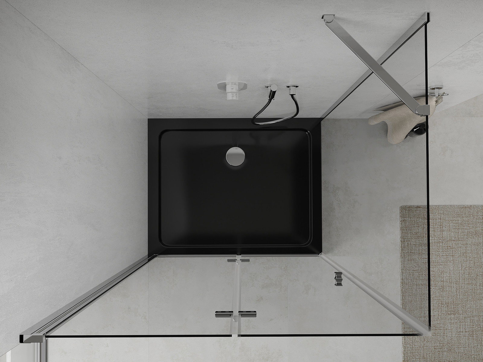 Mexen Lima sulankstoma dušo kabina 90 x 100 cm, permatomas, chromuotas + padėklas Flat, juodas - 856-090-100-01-00-4070