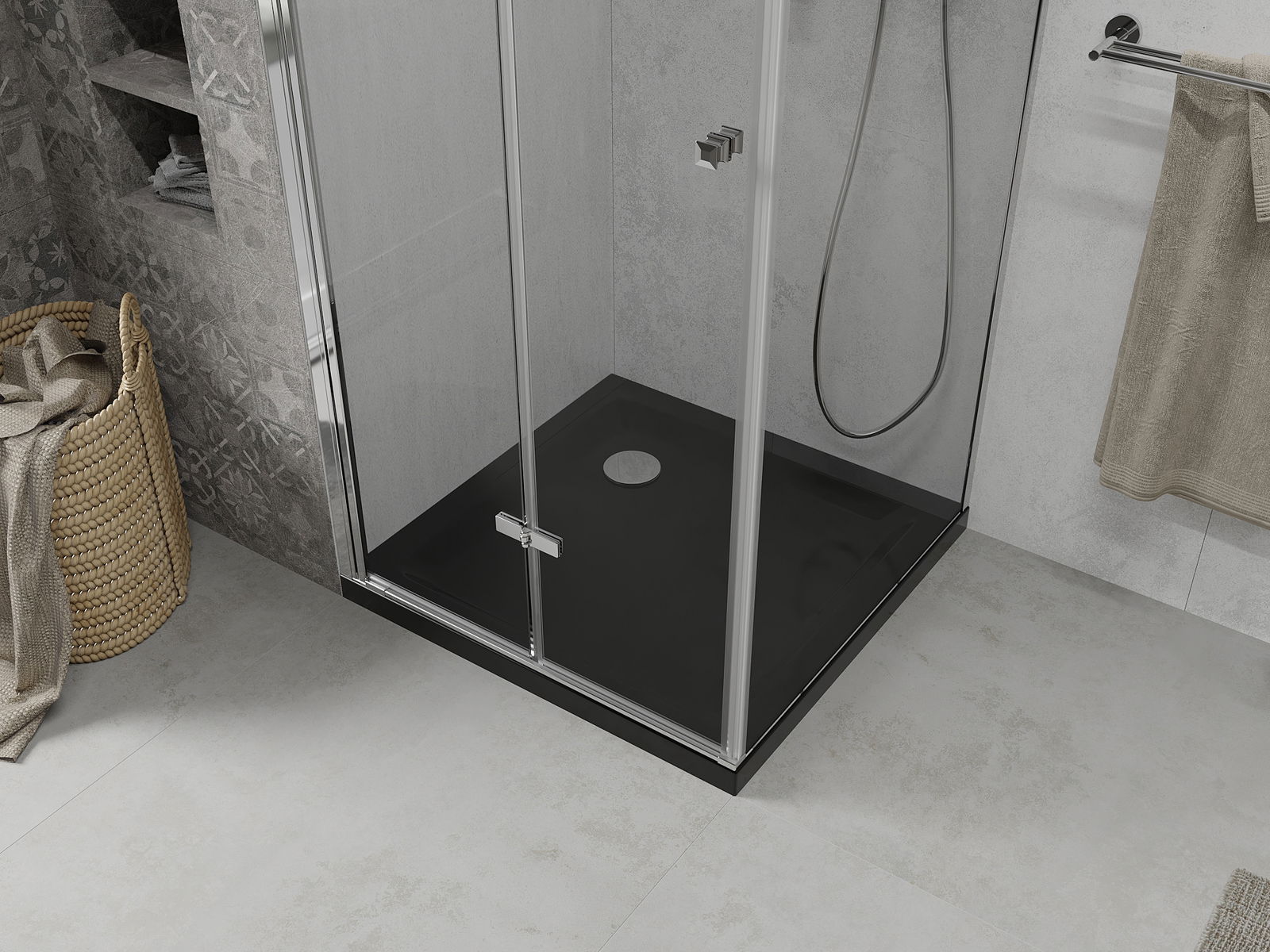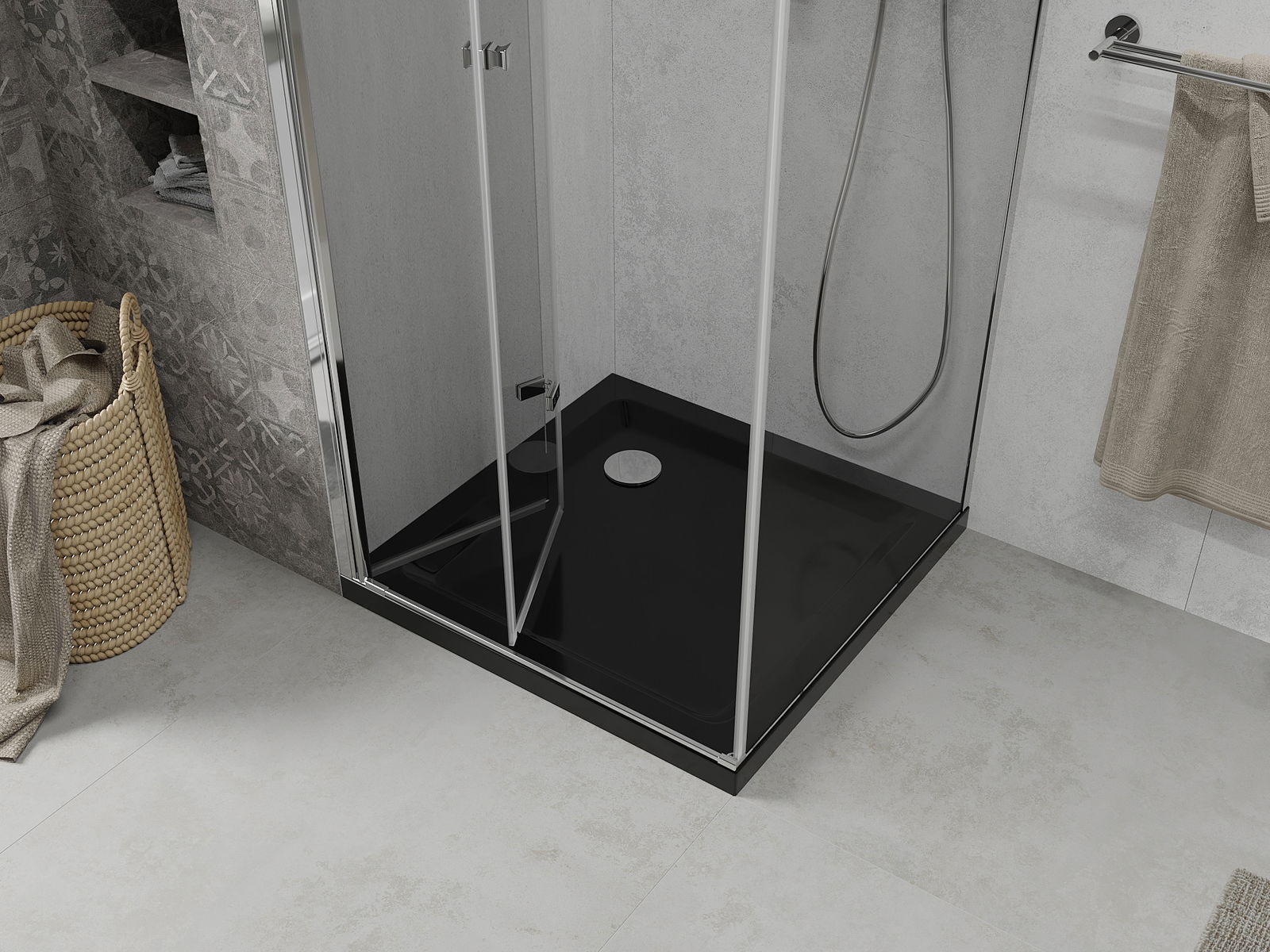 Mexen Lima sulankstoma dušo kabina 90 x 90 cm, skaidri, chromuota + Flat padėklas, juodas - 856-090-090-01-00-4070