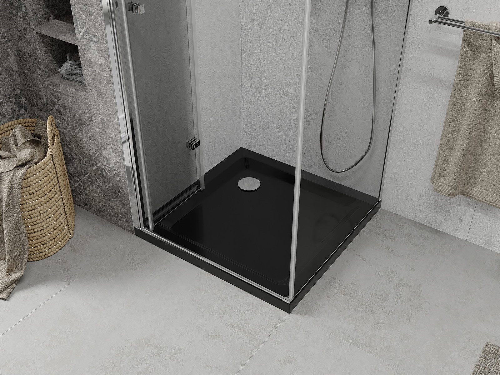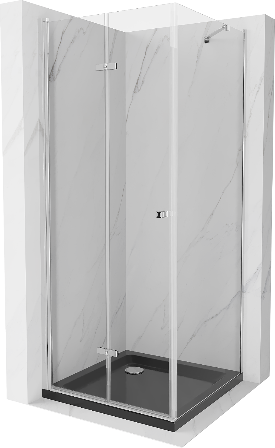 Mexen Lima sulankstoma dušo kabina 90 x 90 cm, skaidus, chromas + dušo padėklas Flat, juodas - 856-090-090-01-00-4070