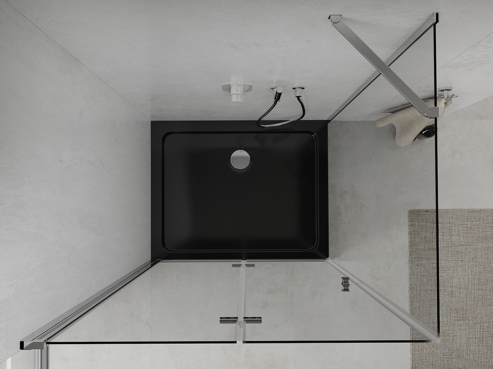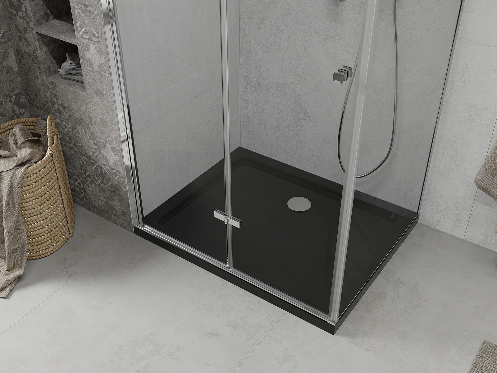 Mexen Lima sulankstoma dušo kabina 100 x 80 cm, permatoma, chromas + plokščias padėklas, juodas - 856-100-080-01-00-4070