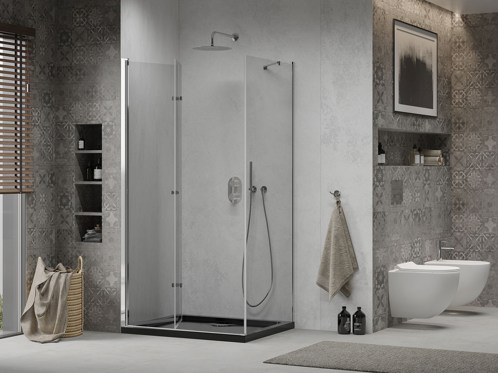 Galimybė sulenkti duris, tiek į išorę, tiek į vidų, leidžia gauti daugiau erdvės nenaudojant dušo. Tai yra idealus sprendimas mažesnėms vonios kambariams, maksimaliai išnaudojantis turimą plotą.