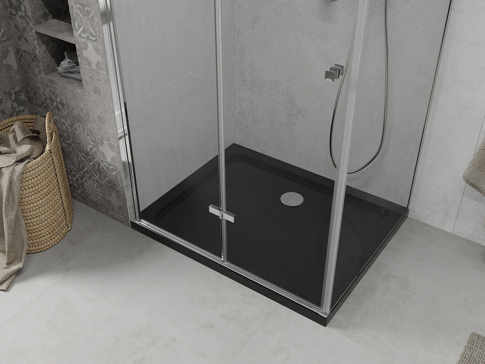 Mexen Lima sulankstoma dušo kabina 100 x 80 cm, permatomas, chromas + dušo padėklas Flat, juodas - 856-100-080-01-00-4070