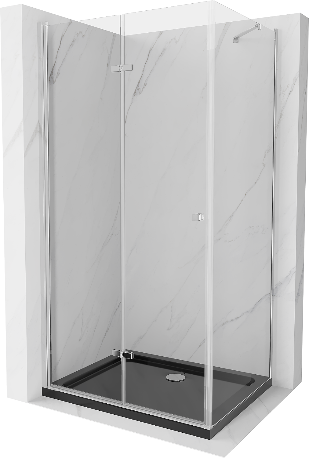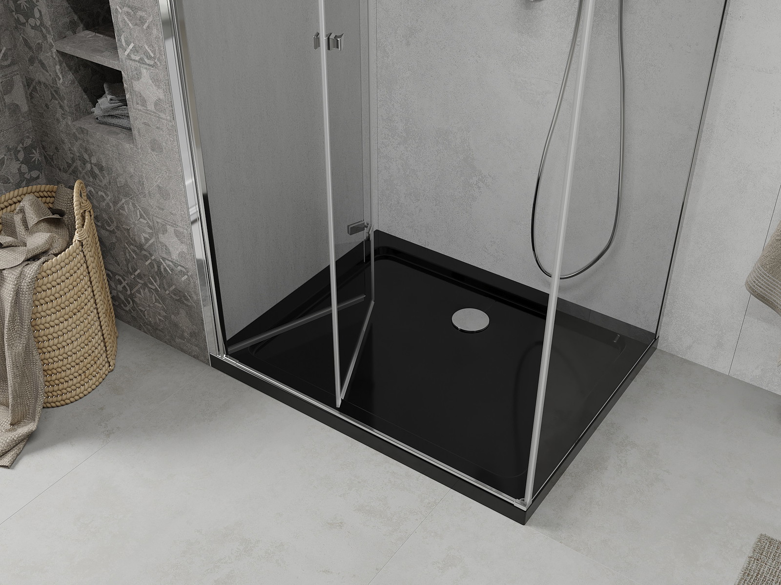 Mexen Lima sulankstomas dušo kabina 120 x 80 cm, skaidrus, chromas + Flat padėklas, juoda - 856-120-080-01-00-4070
