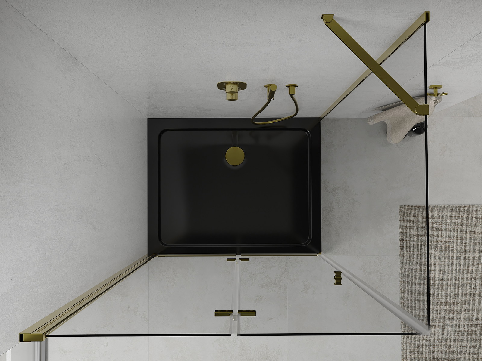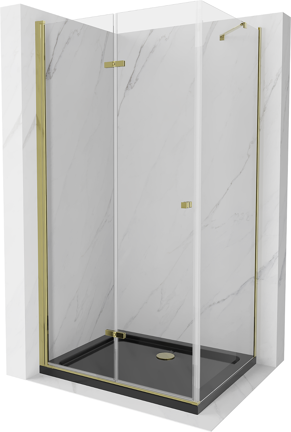 Mexen Lima Sulankiojama dušo kabina 100 x 90 cm, permatoma, auksinė + Flat dušo padėklas, juodas - 856-100-090-50-00-4070G