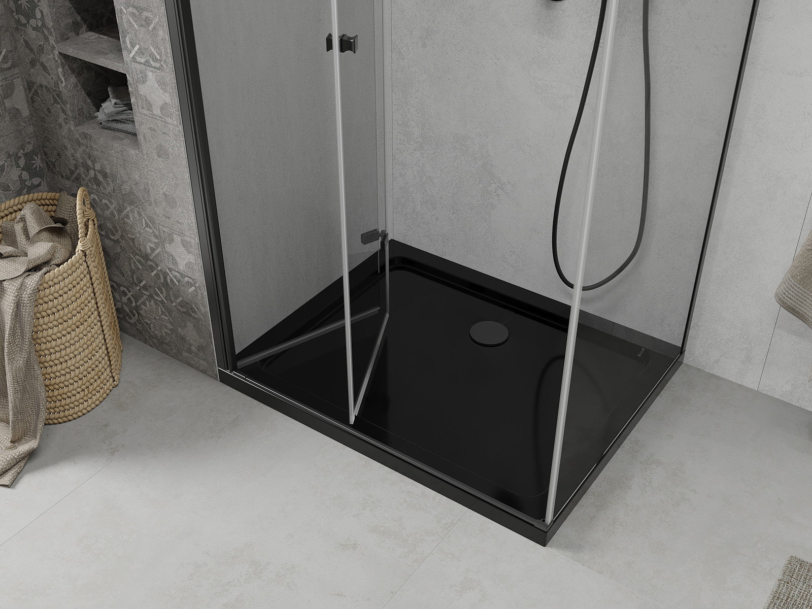 Mexen Lima sulankstoma dušo kabina 80 x 100 cm, skaidri, juoda + Flat padėklas, juodas - 856-080-100-70-00-4070B