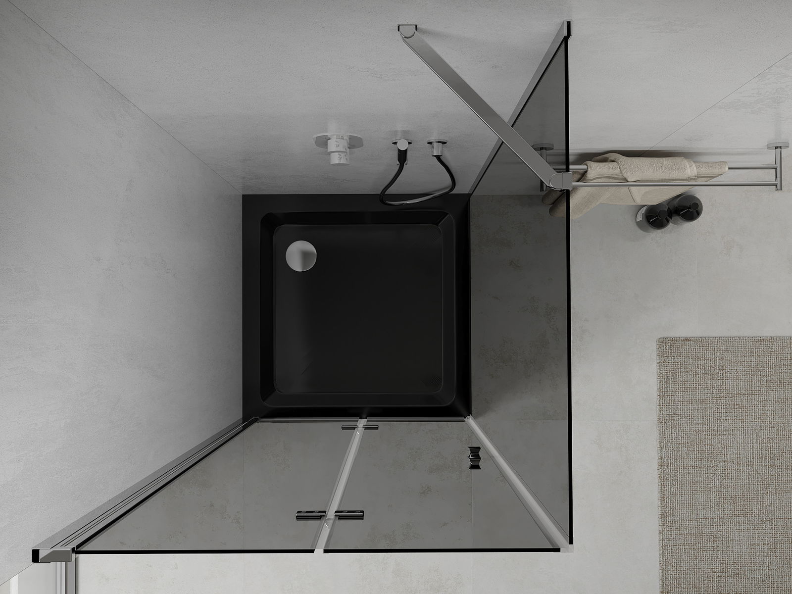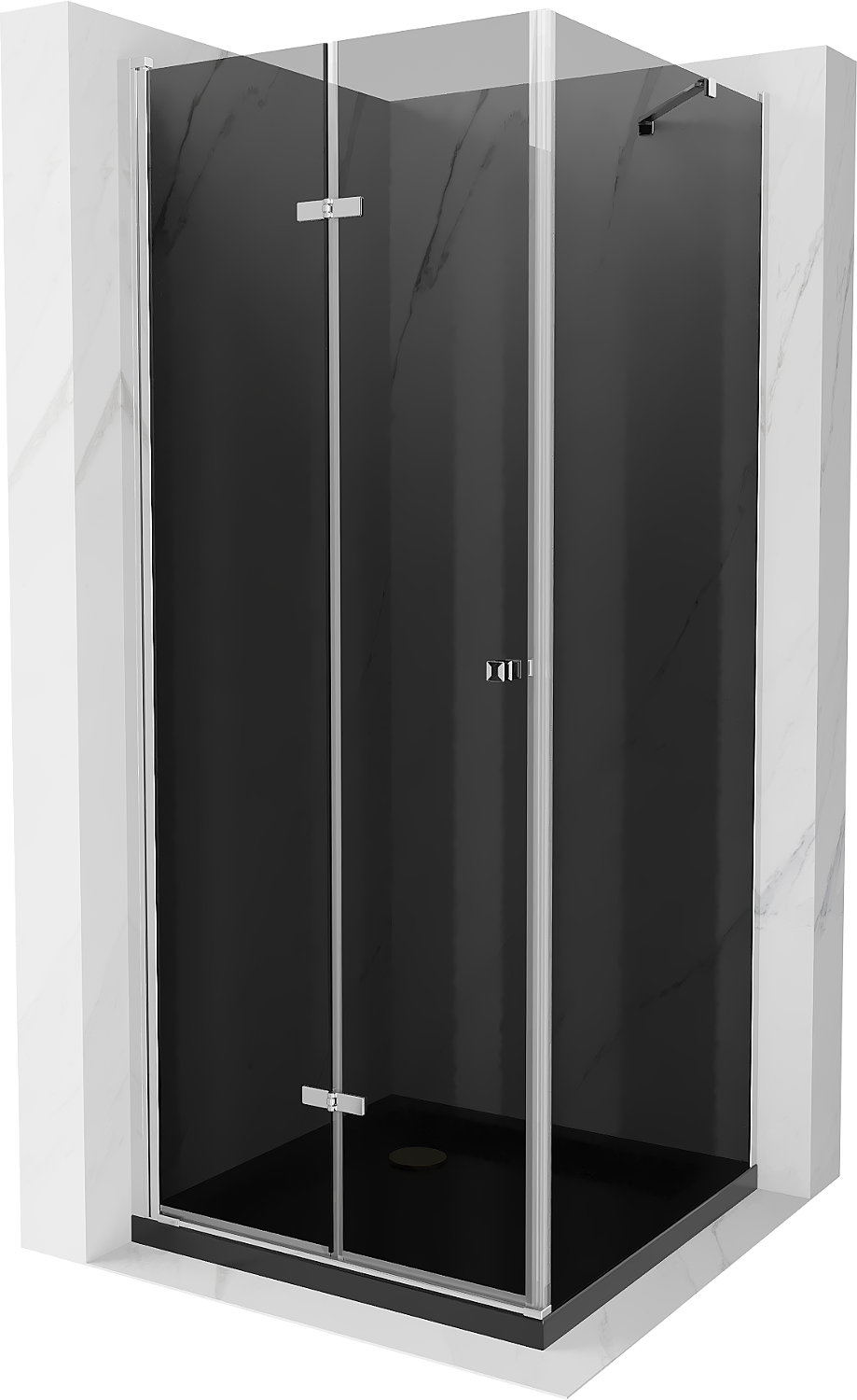 Mexen Lima sulankstoma dušo kabina 90 x 90 cm, grafitas, chromas + Flat dušo padėklas, juodas - 856-090-090-01-40-4070