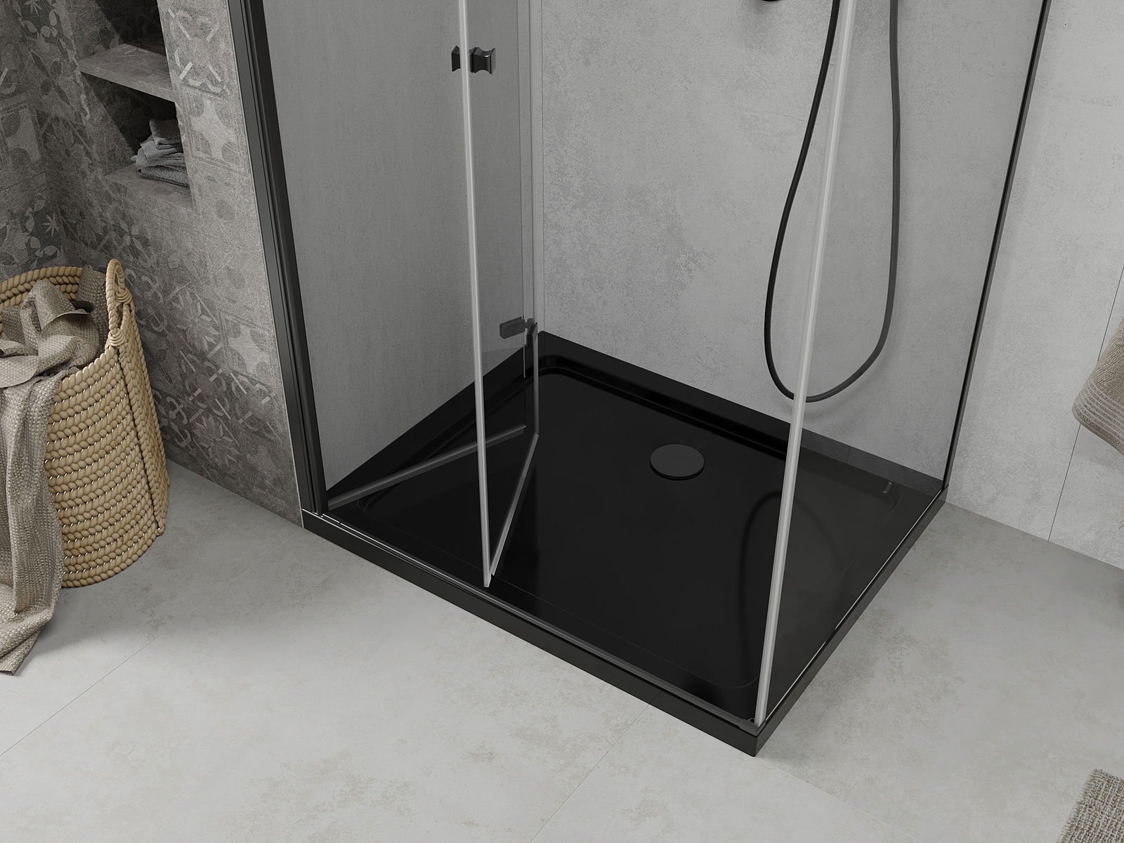 Mexen Lima sulankstoma dušo kabina 90 x 120 cm, skaidri, juoda + Flat padėklas, juodas - 856-090-120-70-00-4070B