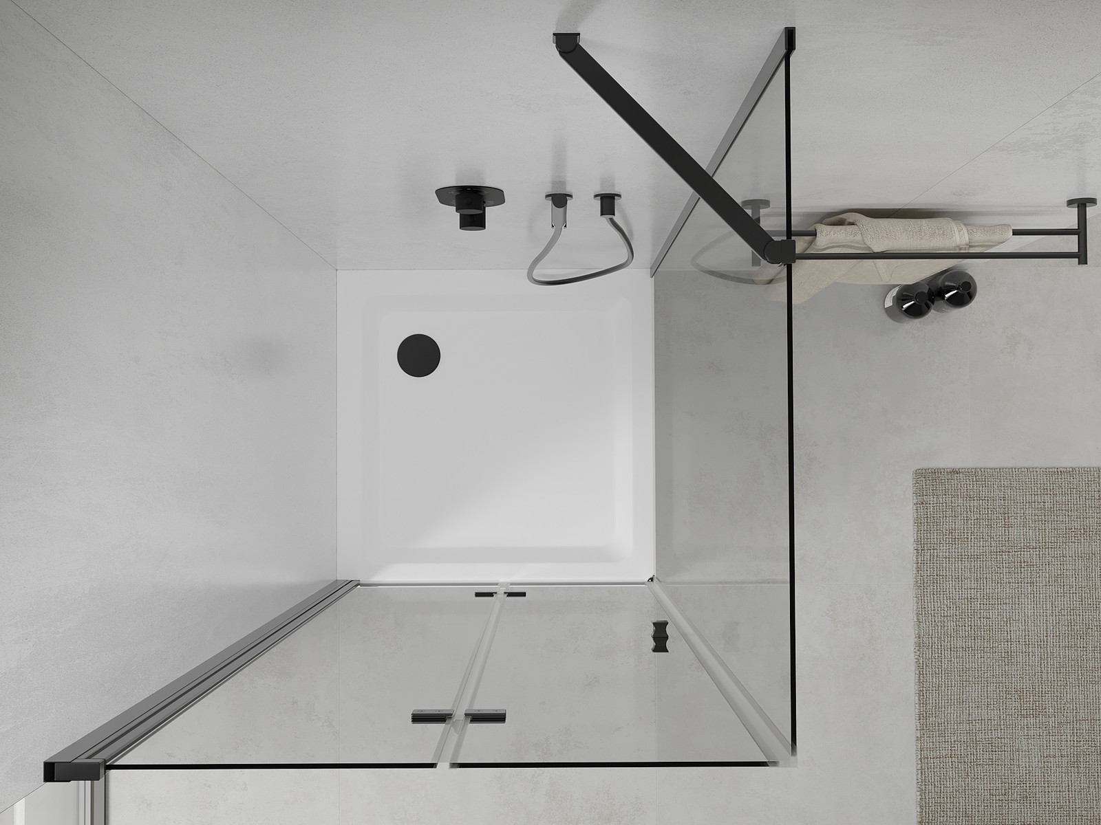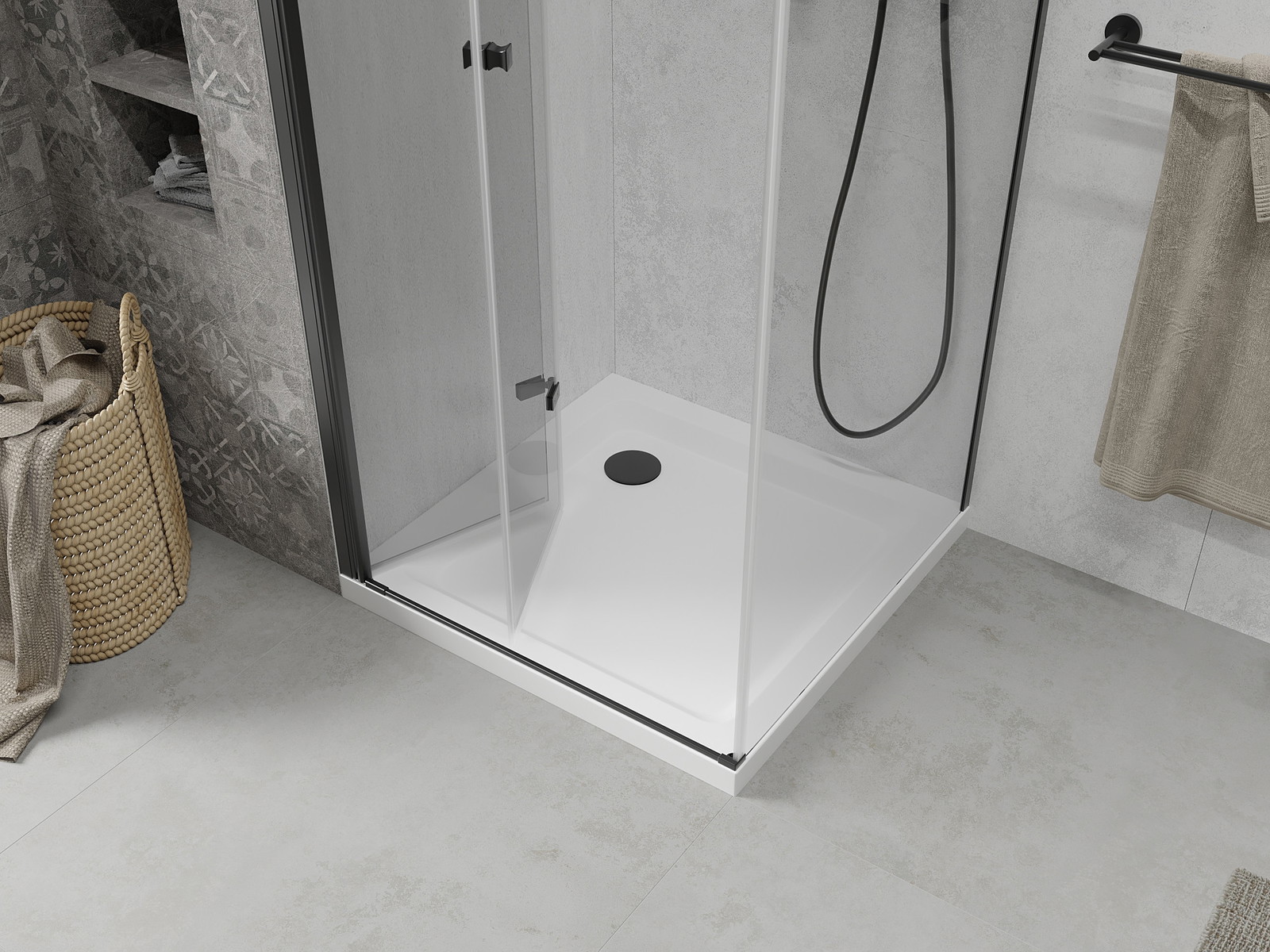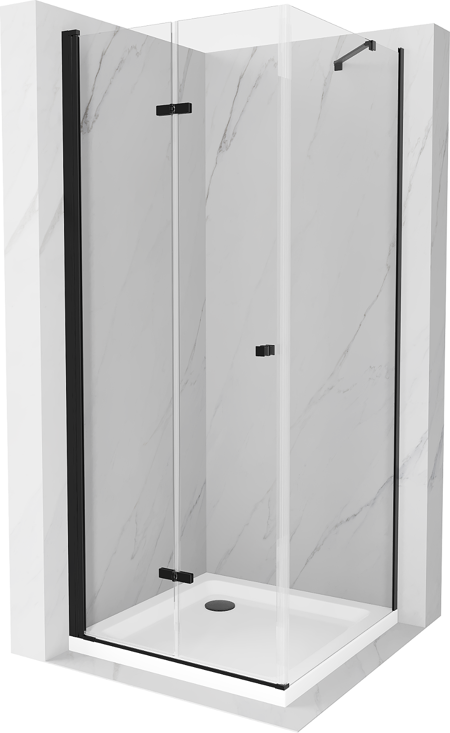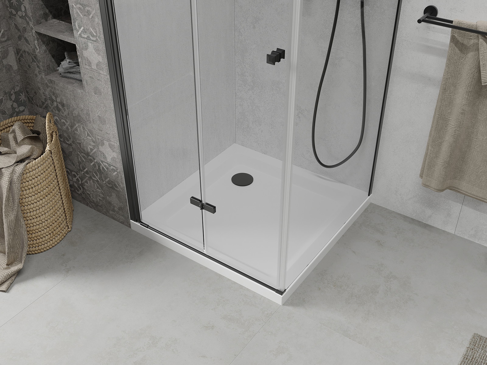 Mexen Lima sulankstoma dušo kabina 80 x 80 cm, permatoma, juoda + Flat padėklas, baltas - 856-080-080-70-00-4010B