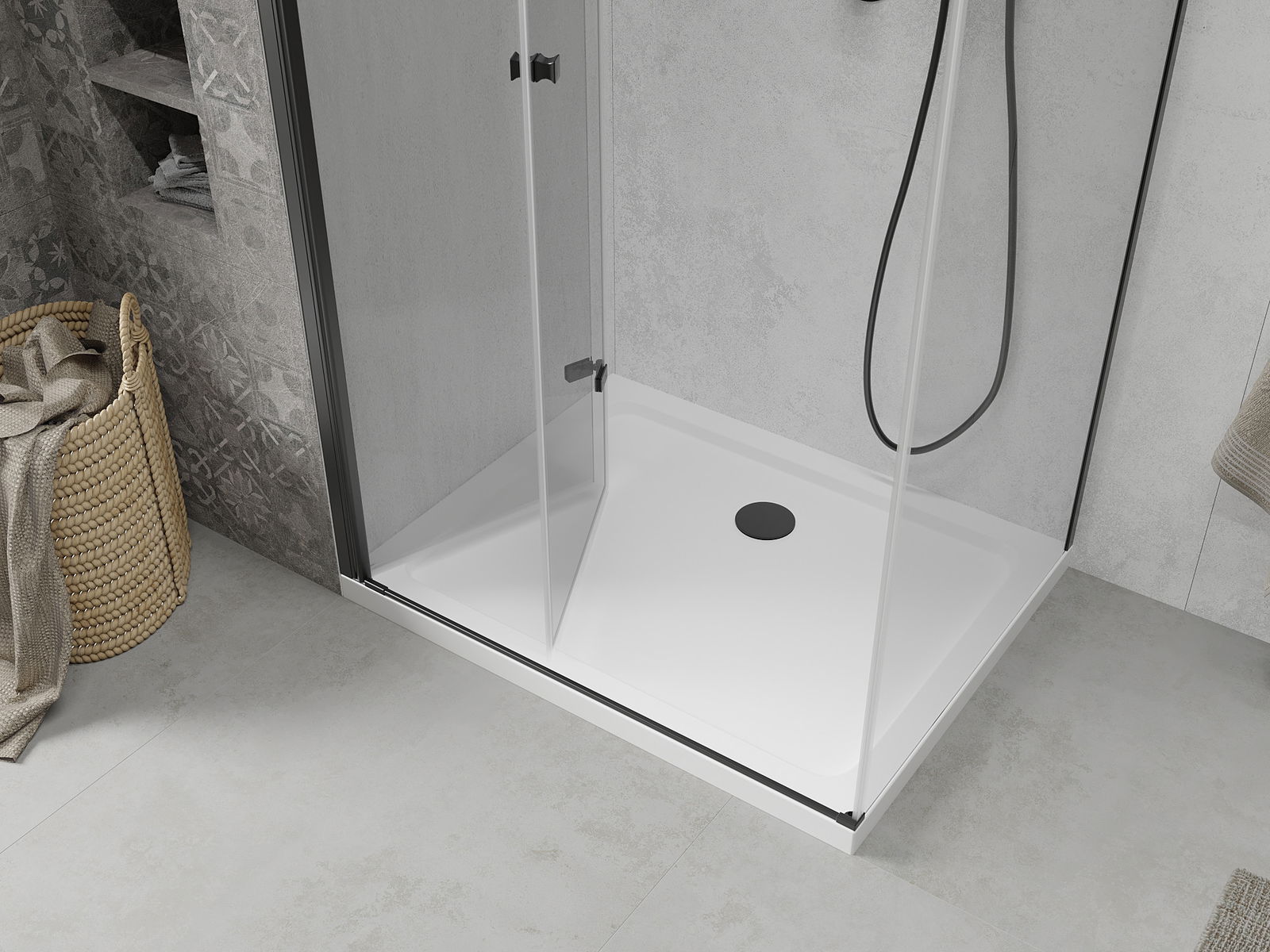 Mexen Lima sulankstoma dušo kabina 90 x 80 cm, skaidri, juoda + Flat padėklas, baltas - 856-090-080-70-00-4010B