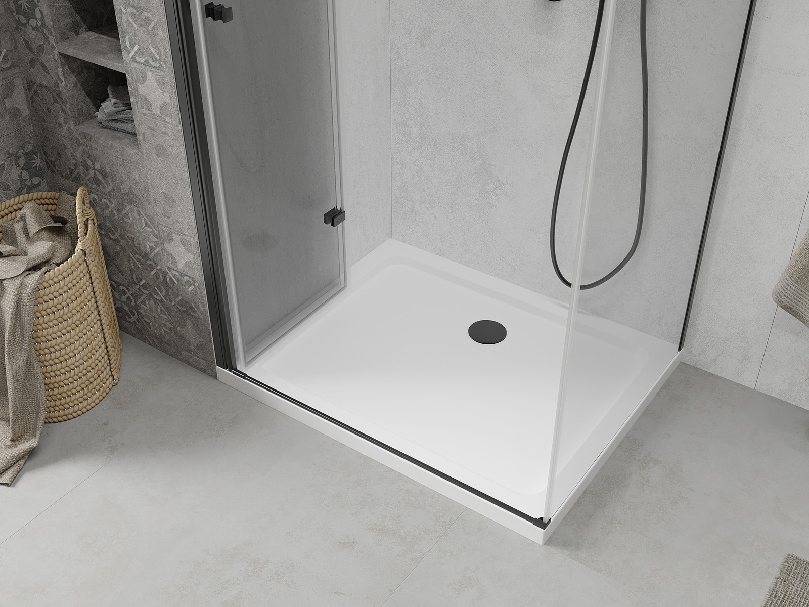 Mexen Lima sulankstoma dušo kabina 100 x 120 cm, skaidri, juoda + plokščias dušo padėklas, baltas - 856-100-120-70-00-4010B