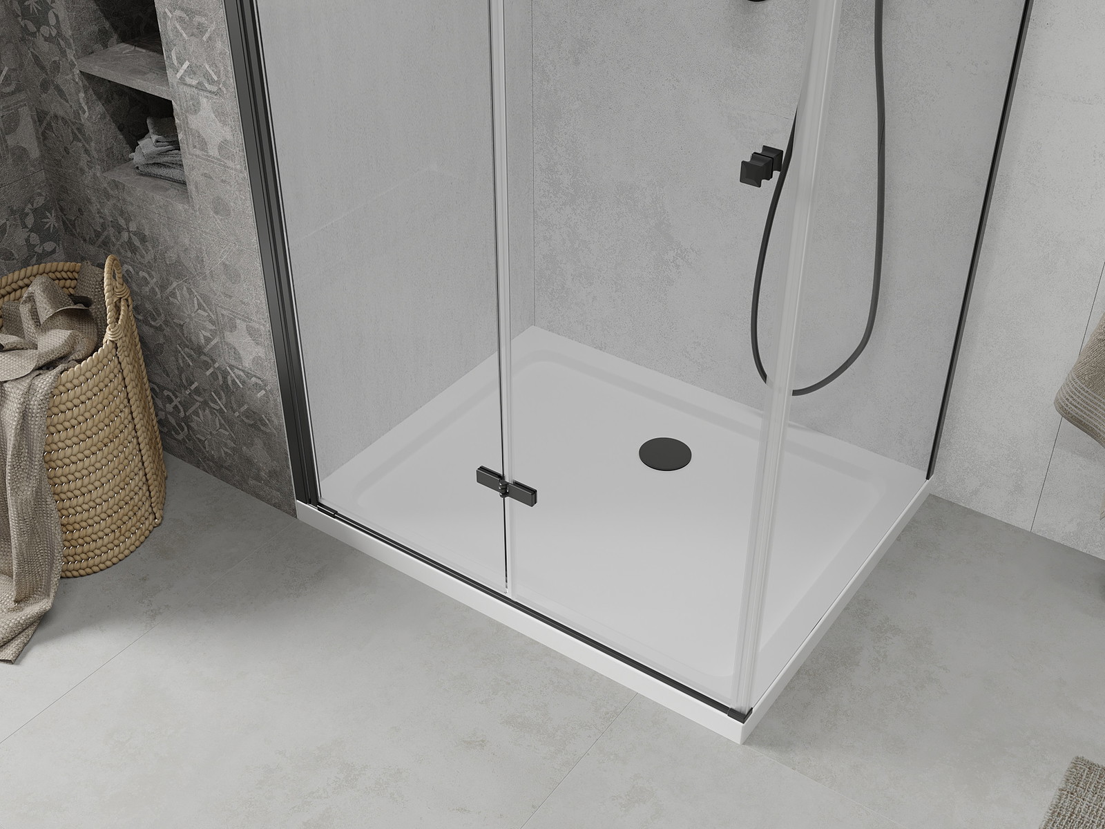 Mexen Lima sulankstoma dušo kabina 120 x 90 cm, skaidri, juoda + Flat padėklas, baltas - 856-120-090-70-00-4010B