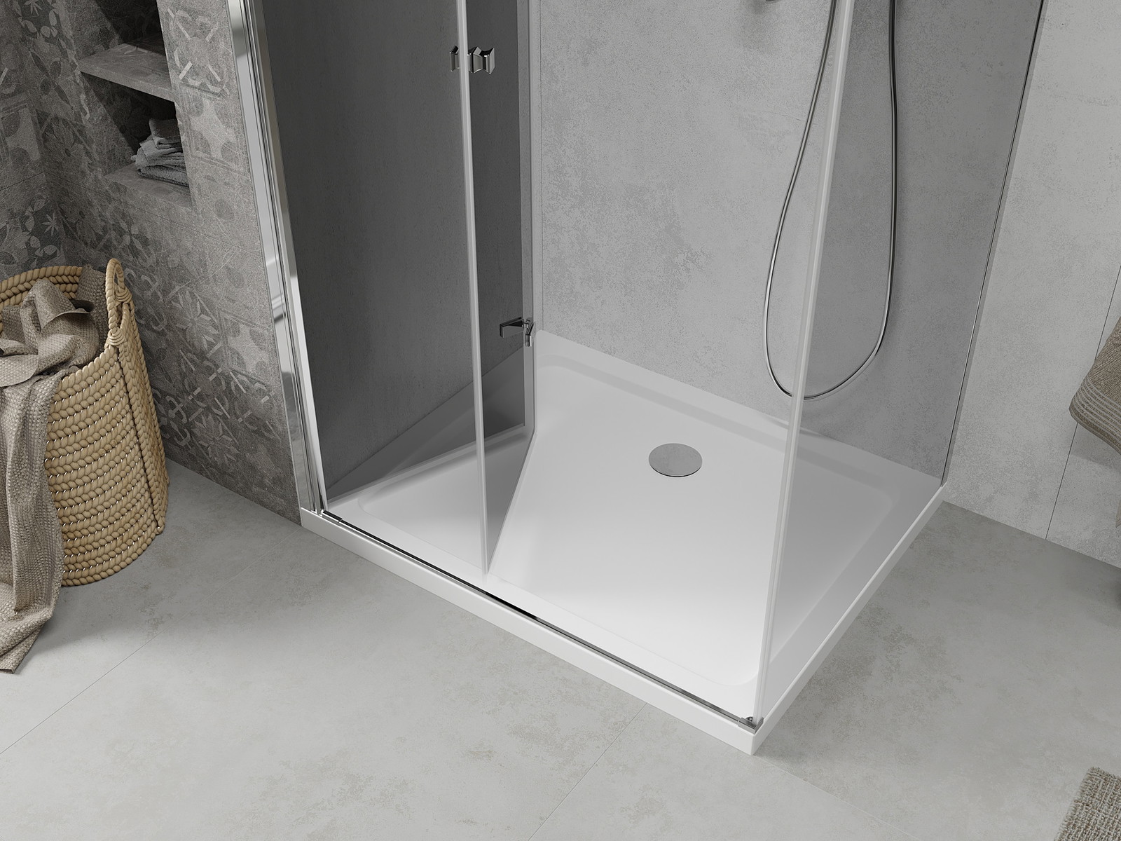 Galimybė sulenkti duris, tiek į išorę, tiek į vidų, leidžia gauti daugiau erdvės nenaudojant dušo. Tai yra idealus sprendimas mažesnėms vonios kambariams, maksimaliai išnaudojantis turimą plotą.