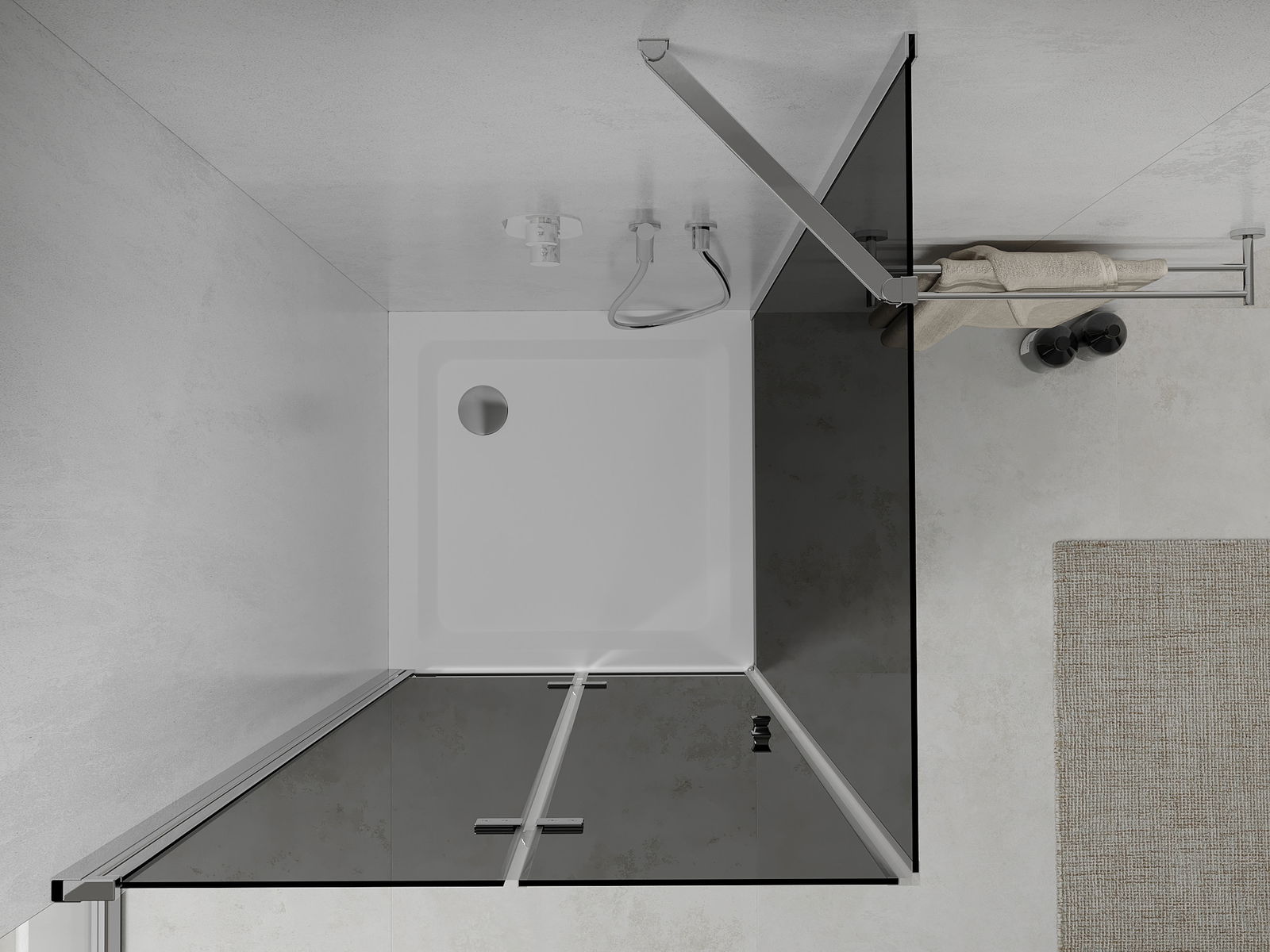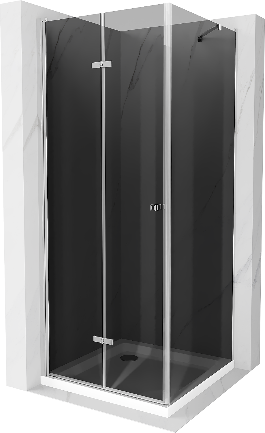 Mexen Lima sulankstoma dušo kabina 100 x 100 cm, grafitas, chromas + dušo padėklas Flat, baltas - 856-100-100-01-40-4010