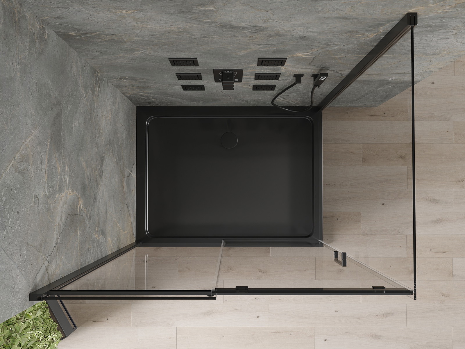 Mexen Omega stumdoma dušo kabina 100 x 90 cm, skaidrus, juodas + plokščias dušo padėklas, juodas - 825-100-090-70-00-4070B