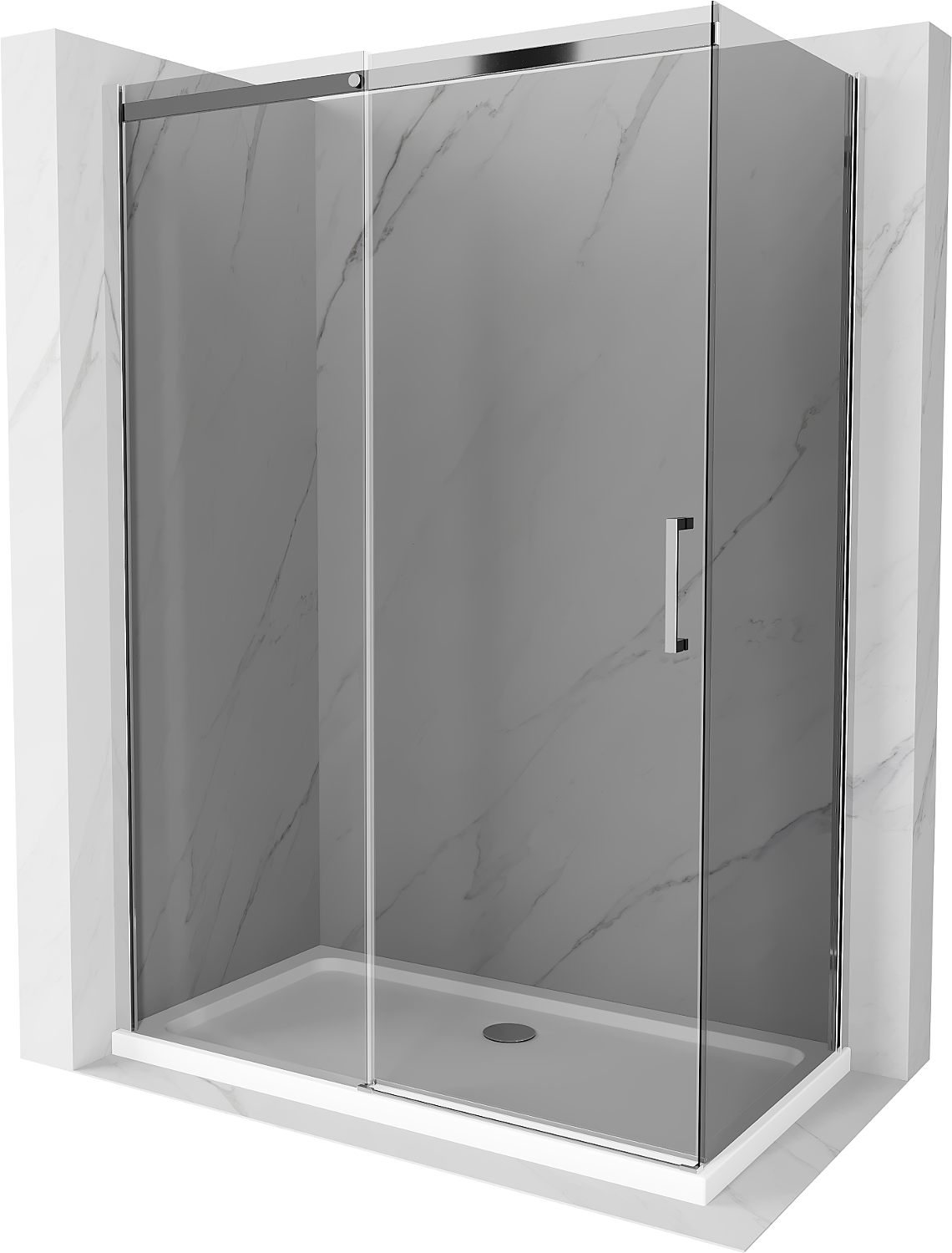 Mexen Omega slankiojama dušo kabina 140 x 80 cm, grafito spalvos, chromuota + Flat padėklas, baltas - 825-140-080-01-40-4010