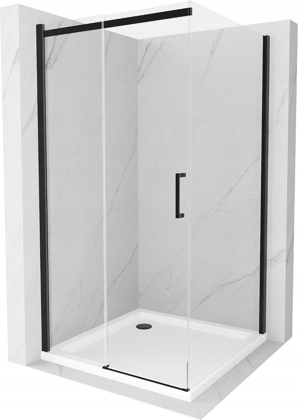 Mexen Omega dušo kabina slankiojanti 100 x 100 cm, permatoma, juoda + padėklas Flat, baltas - 825-100-100-70-00-4010B