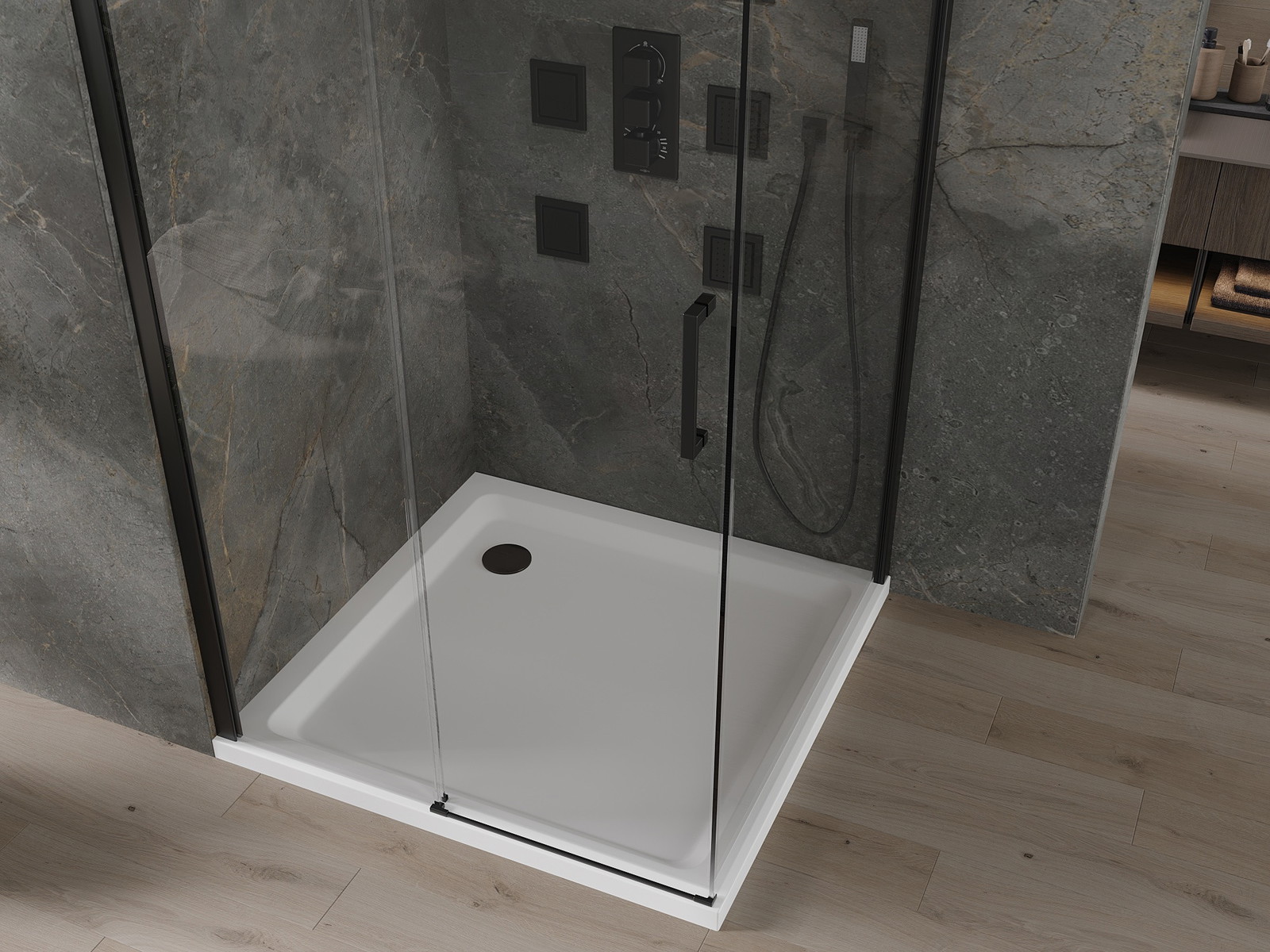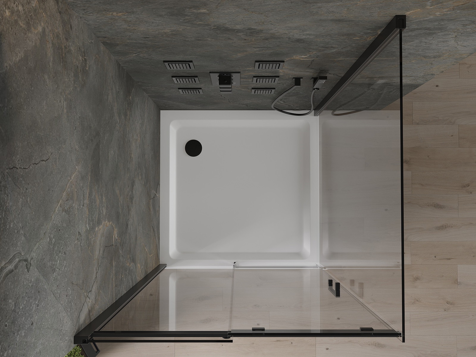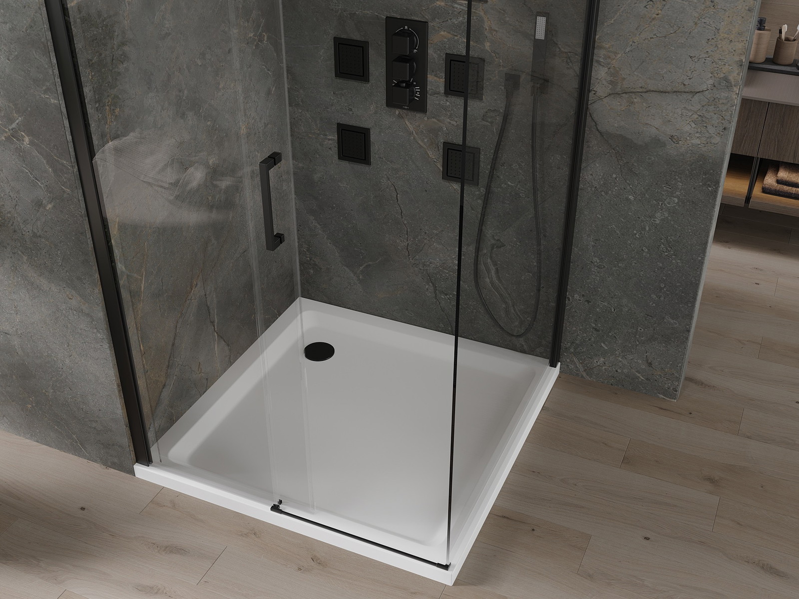 Mexen Omega stumenačiai dušo kabina 100 x 100 cm, permatoma, juoda + Flat dušo padėklas, baltas - 825-100-100-70-00-4010B
