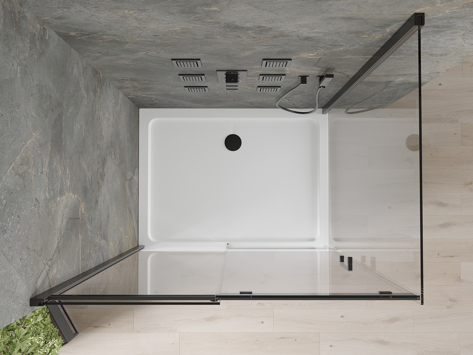 Dėl universalaus tvirtinimo sistemos, dušo durys gali būti sumontuotos dešinėje arba kairėje pusėje, atsižvelgiant į poreikius. Tai leidžia lengvai suprojektuoti dušą, pritaikytą vonios kambario erdvei.