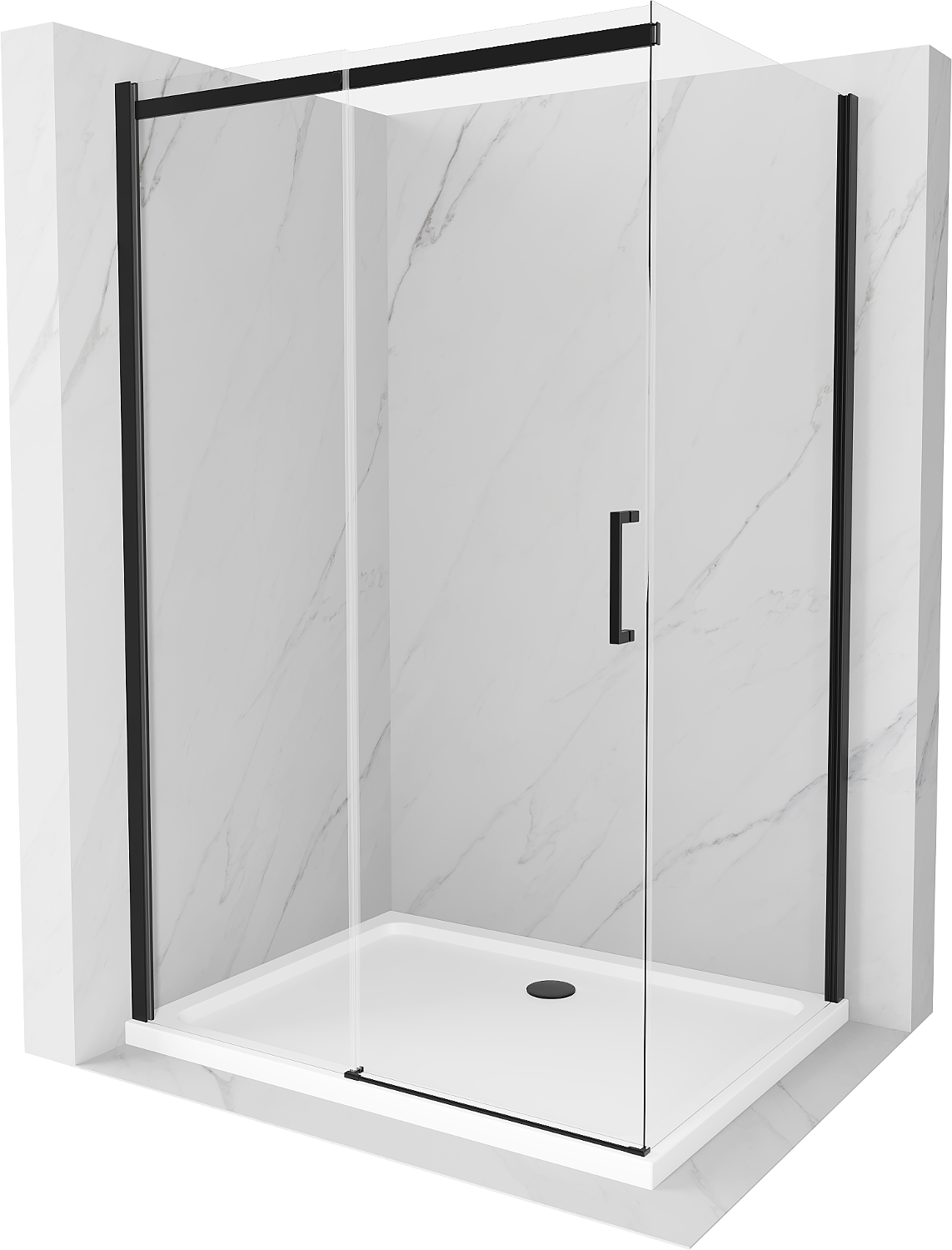 Mexen Omega stumdomoji dušo kabina 110 x 90 cm, skaidri, juoda + plokščias dušo padėklas, baltas - 825-110-090-70-00-4010B