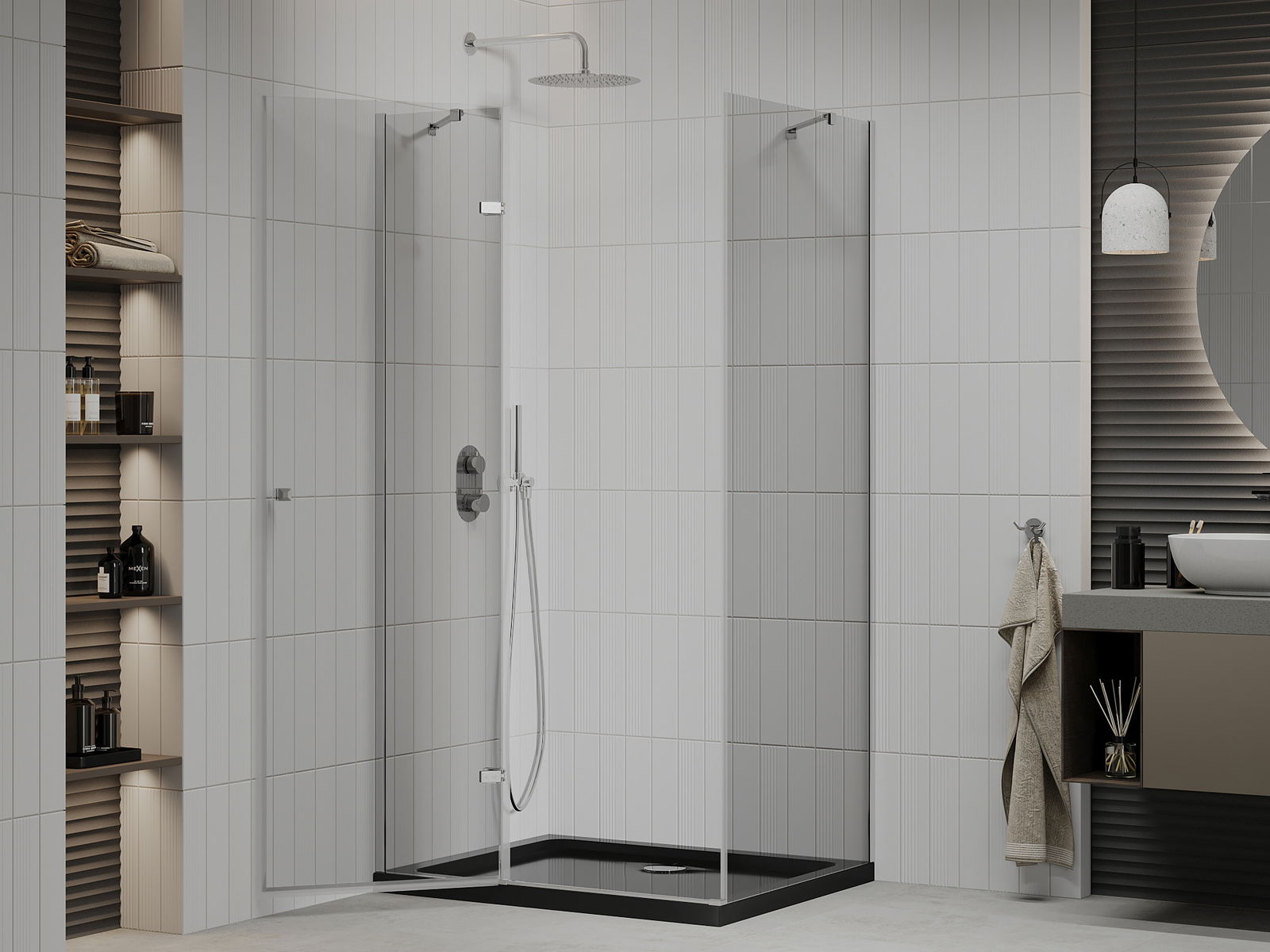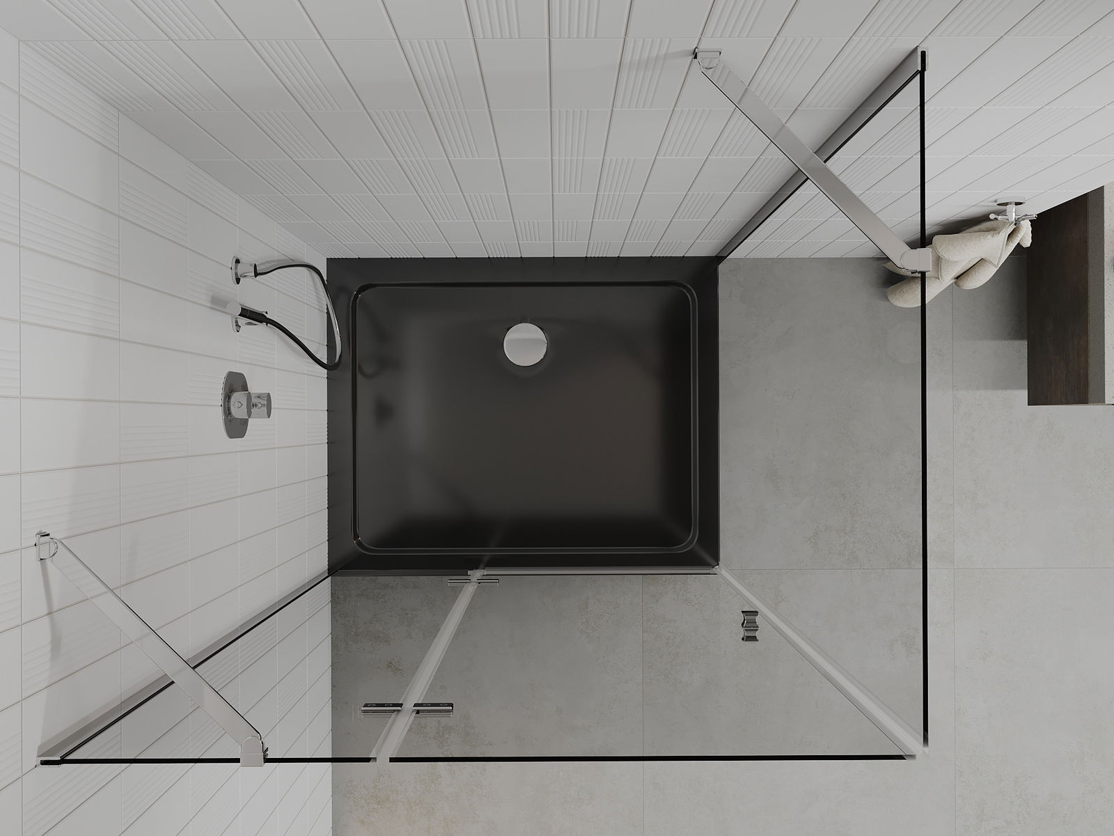 Mexen Roma dušo kabina su atveriamomis durimis 120 x 80 cm, skaidri, chromuota + Flat juoda dušo padėklas