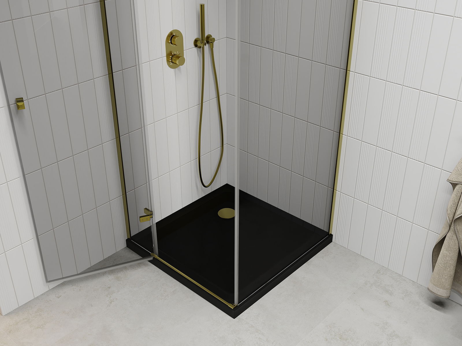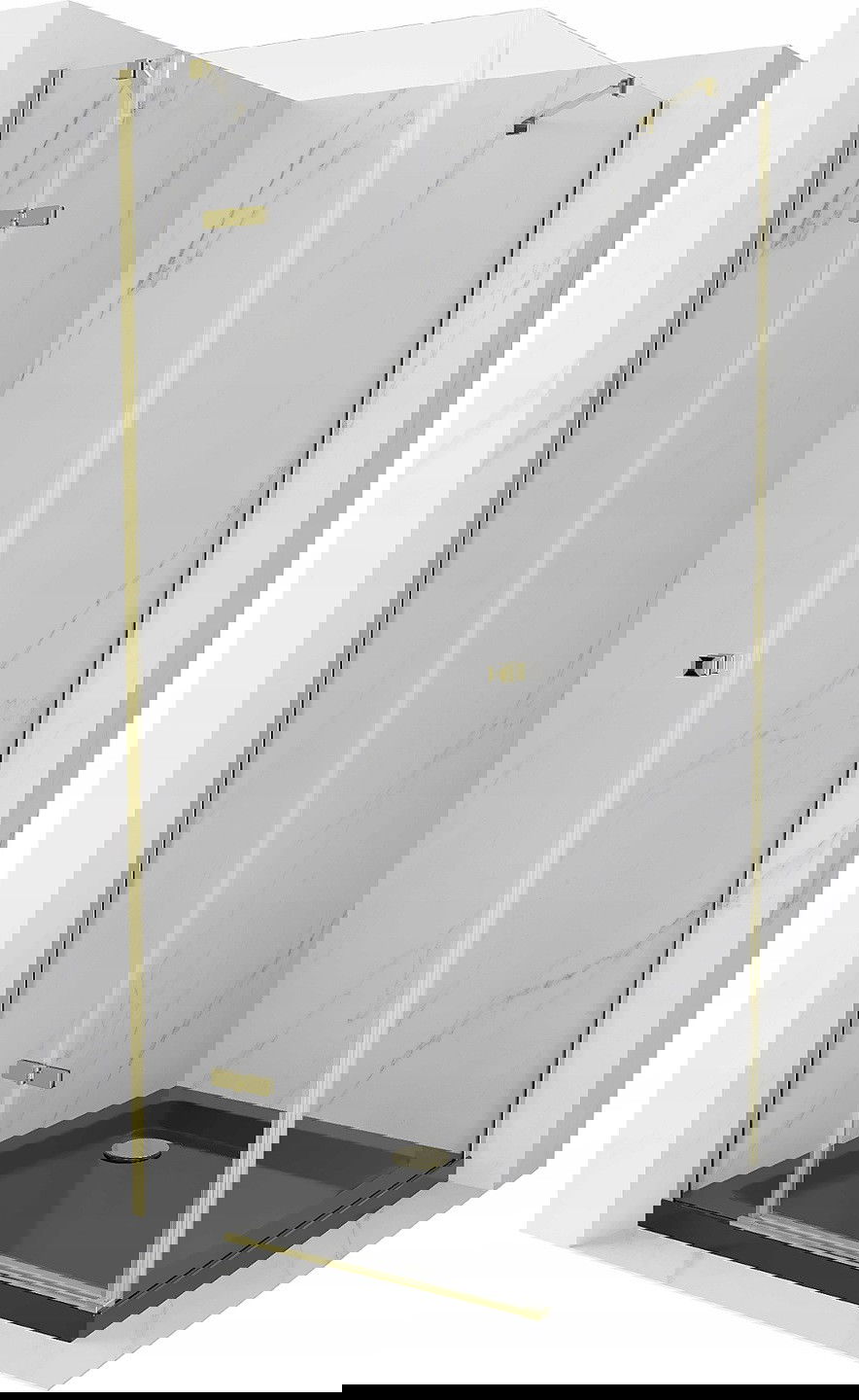 Mexen Roma 90 x 90 cm atveriama dušo kabina, skaidri, auksinė + lygus juodas padėklas - 854-090-090-50-00-4070G