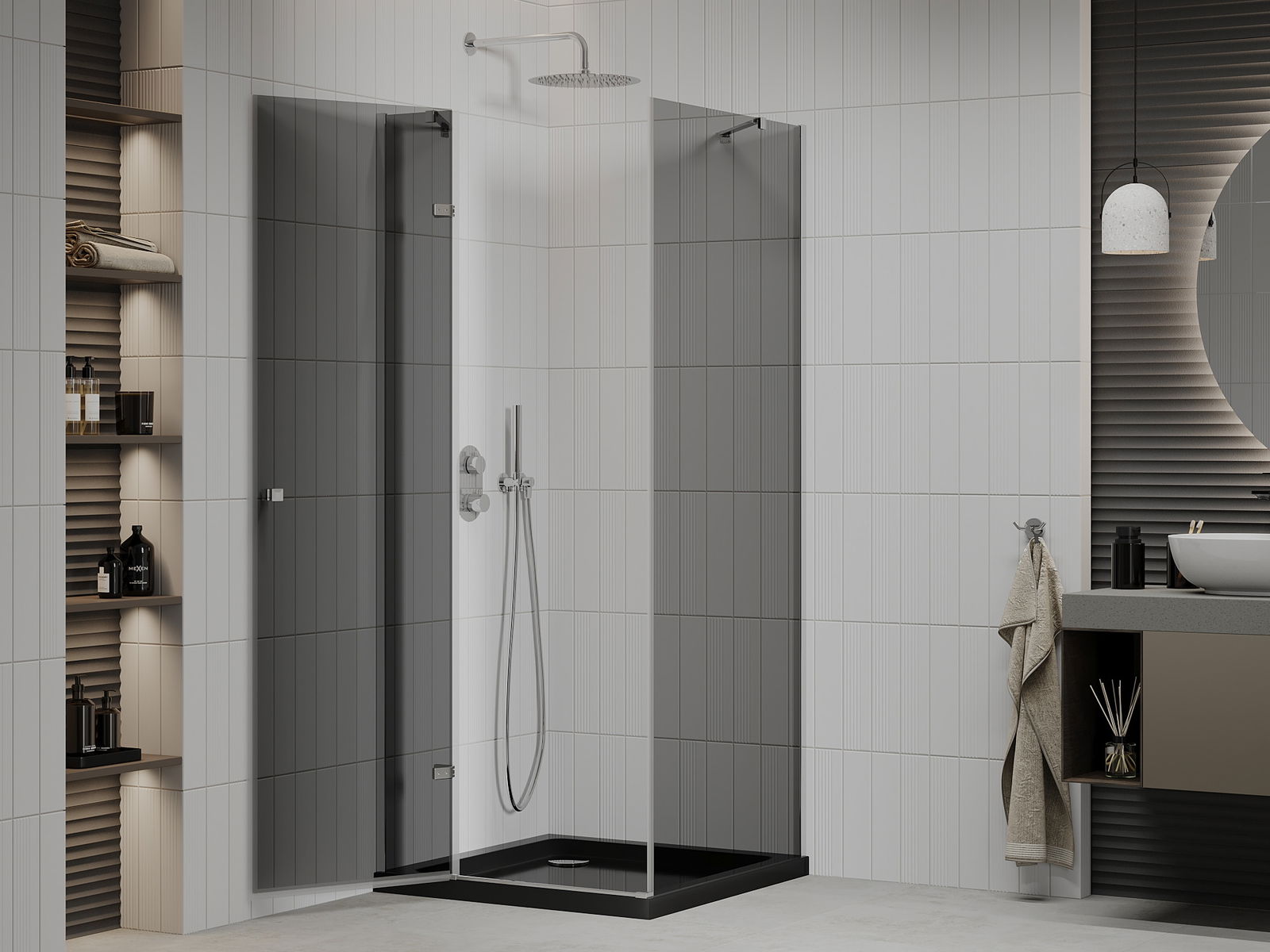 Dėl universalios tvirtinimo sistemos naudojimo dušo durys gali būti pritvirtintos dešinėje arba kairėje, atsižvelgiant į jūsų poreikius. To dėka galite lengvai suprojektuoti dušą, pritaikytą vonios kambario erdvei.