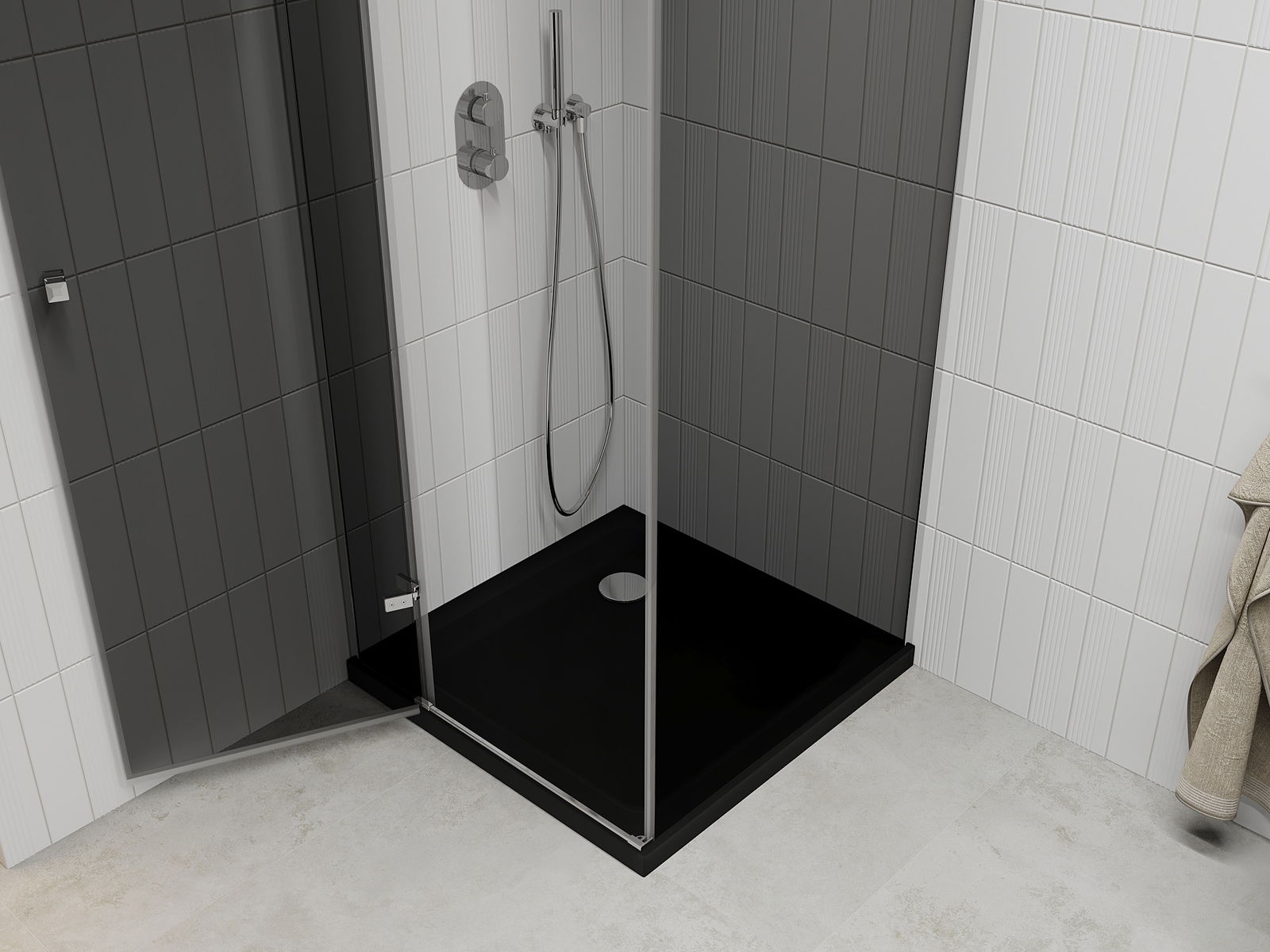 Dėl universalios tvirtinimo sistemos naudojimo dušo durys gali būti pritvirtintos dešinėje arba kairėje, atsižvelgiant į jūsų poreikius. To dėka galite lengvai suprojektuoti dušą, pritaikytą vonios kambario erdvei.
