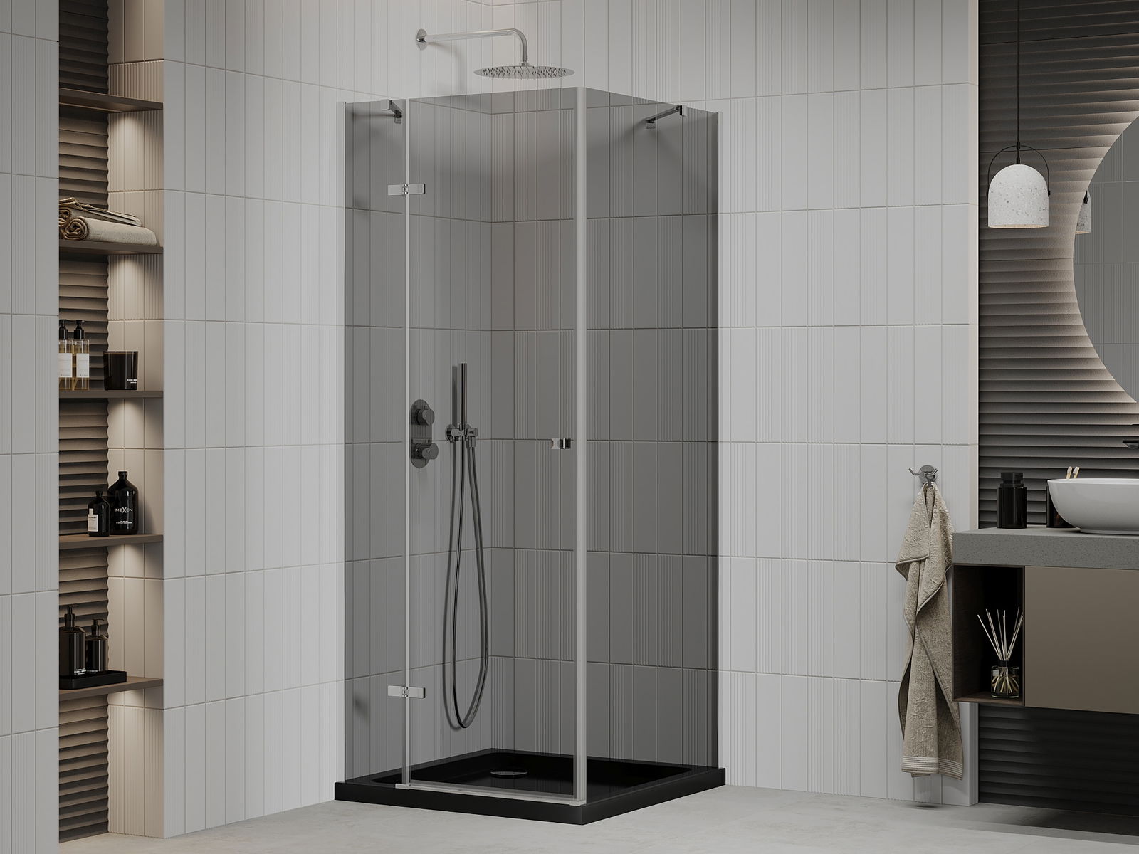Mexen Roma dušo kabina atveriama 90 x 90 cm, grafitas, chromas + juodas padėklas Flat - 854-090-090-01-40-4070