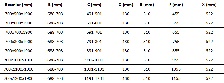 Dydis: 70x90 cm (durys 70 cm, sienelė 90 cm)