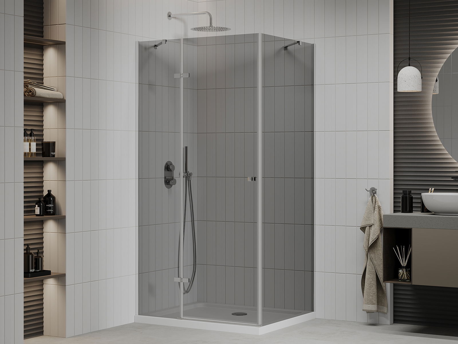 Mexen Roma dušo kabina su varstomomis durimis 90 x 80 cm, grafitas, chromas + Flat padėklas, baltas - 854-090-080-01-40-4010