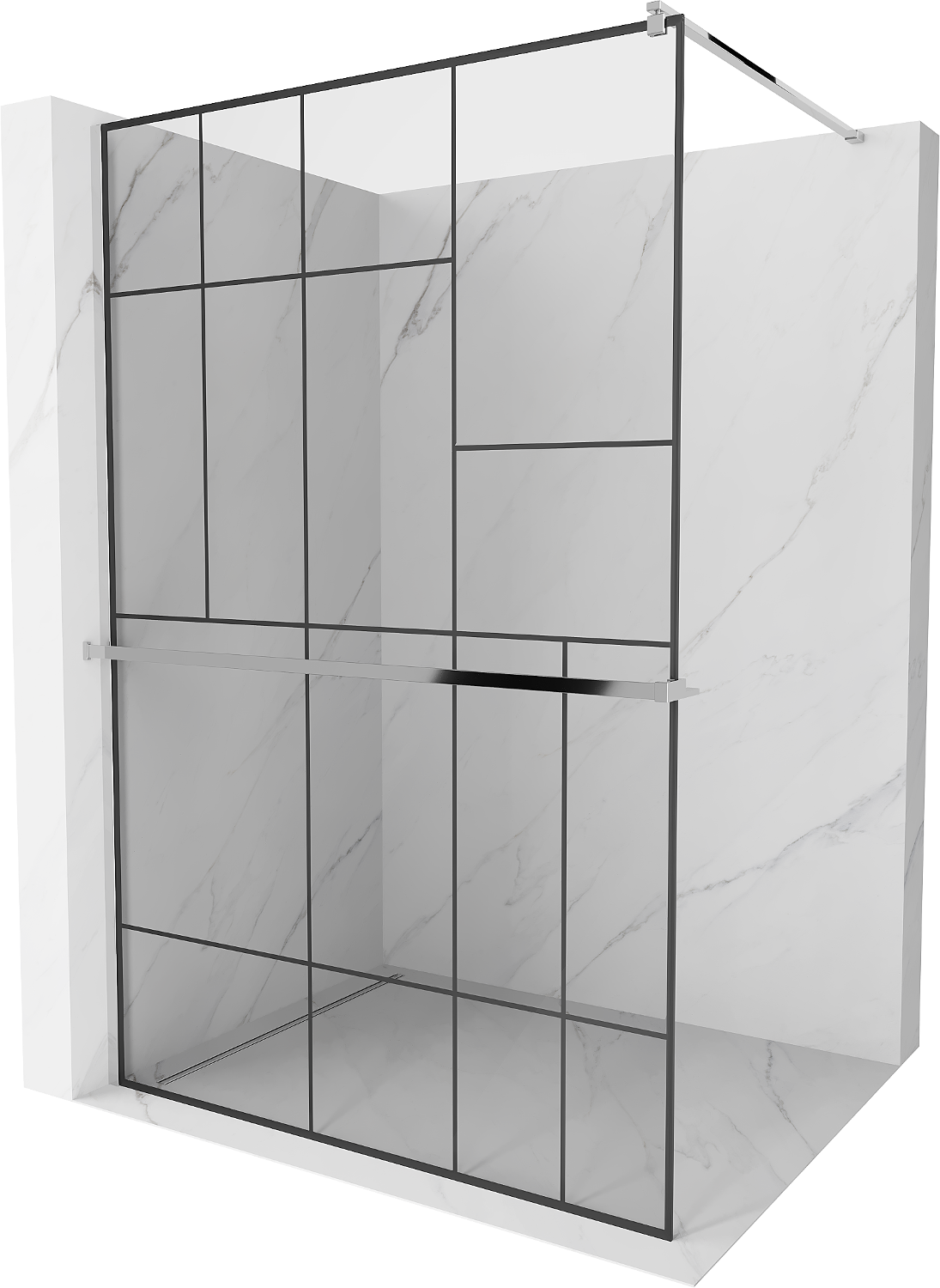 Mexen Kioto+ dušo siena su lentyna Walk-in 120 x 200 cm, juodas raštas, chromas - 800-120-121-01-78