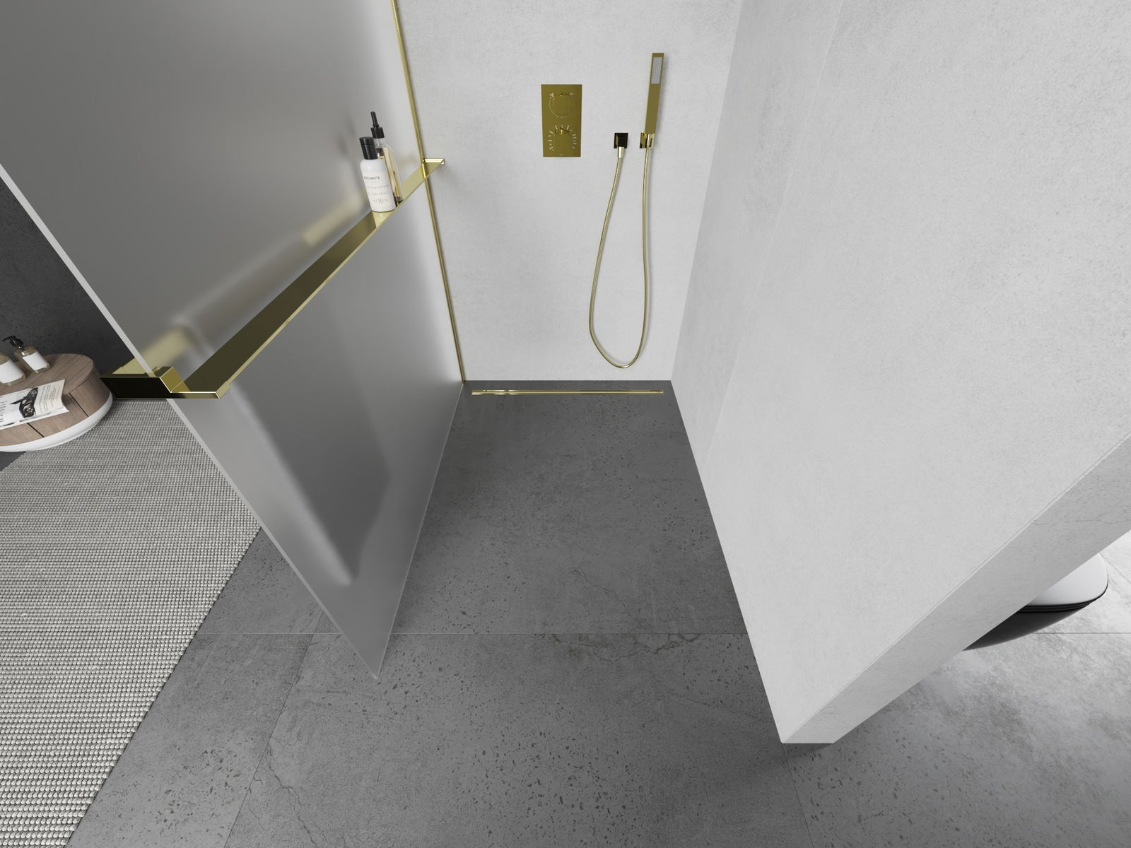 Mexen Kioto+ dušo sienelė su lentyna Walk-in 80 x 200 cm, matinė, auksinė - 800-080-121-50-30