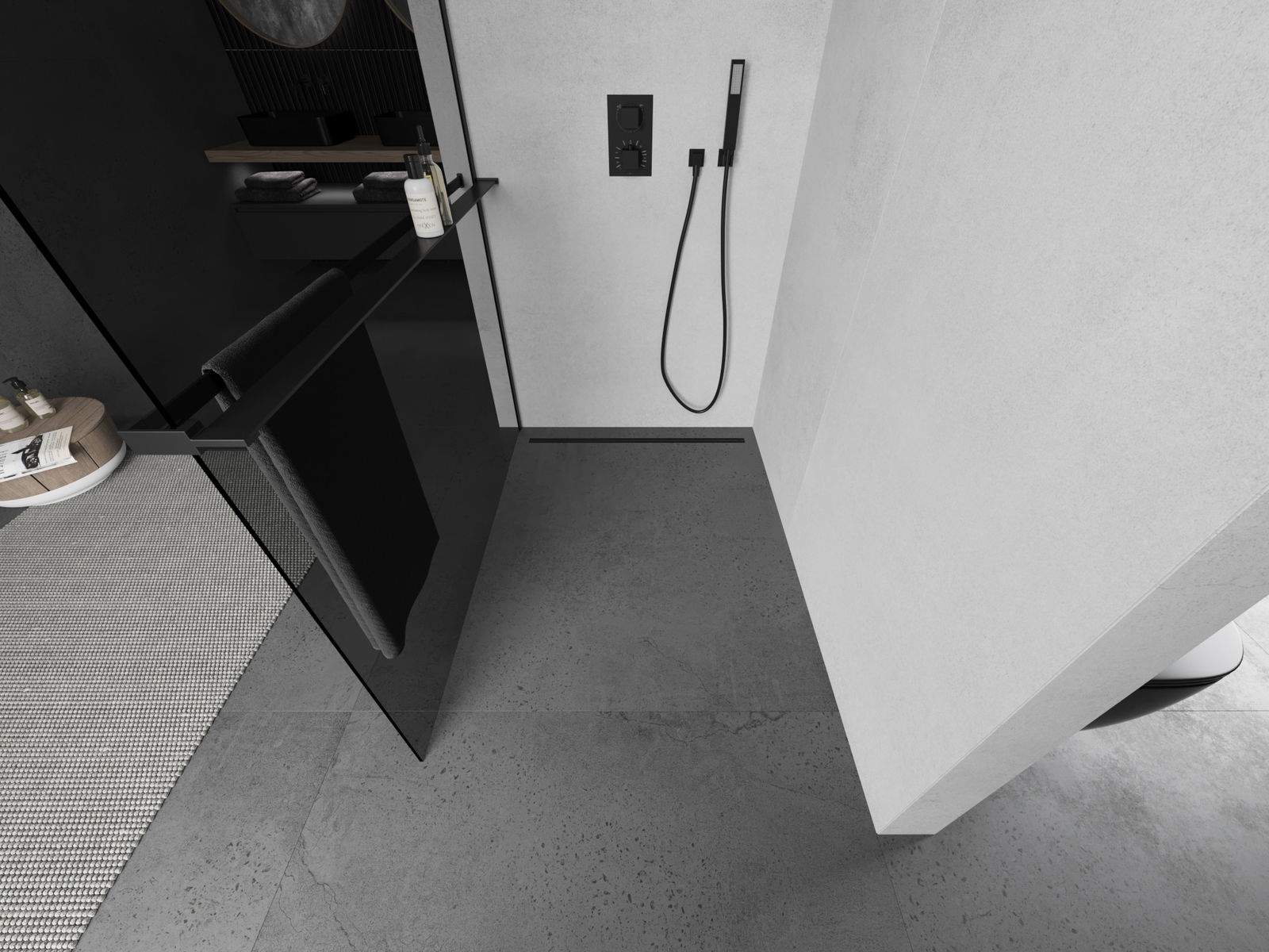 Mexen Kioto+ dušo siena su lentyna Walk-in 80 x 200 cm, grafitas, juoda - 800-080-121-70-40