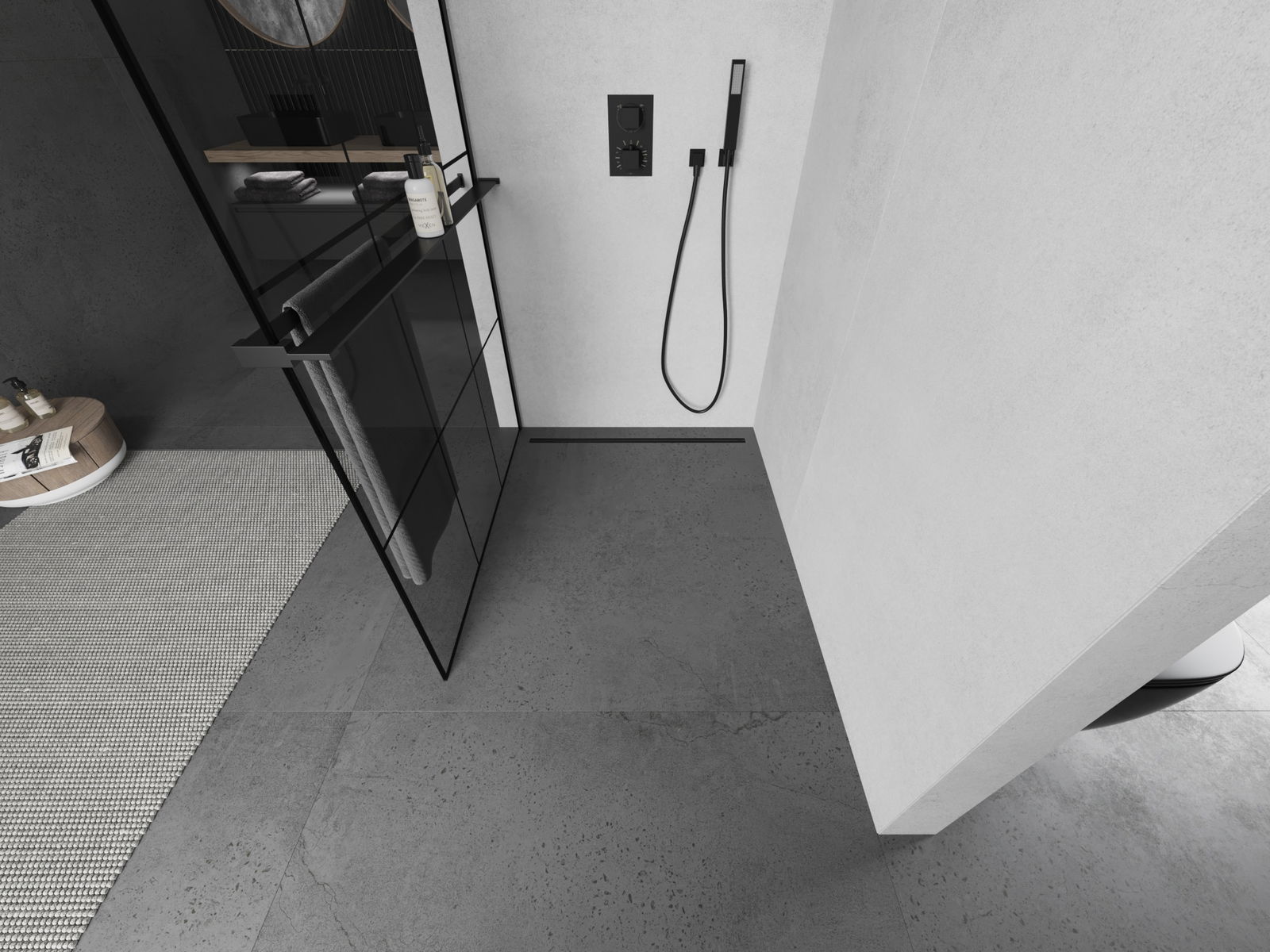 Mexen Kioto+ dušo sienelė su lentyna Walk-in 100 x 200 cm, juodas tinklelis, juoda - 800-100-121-70-77