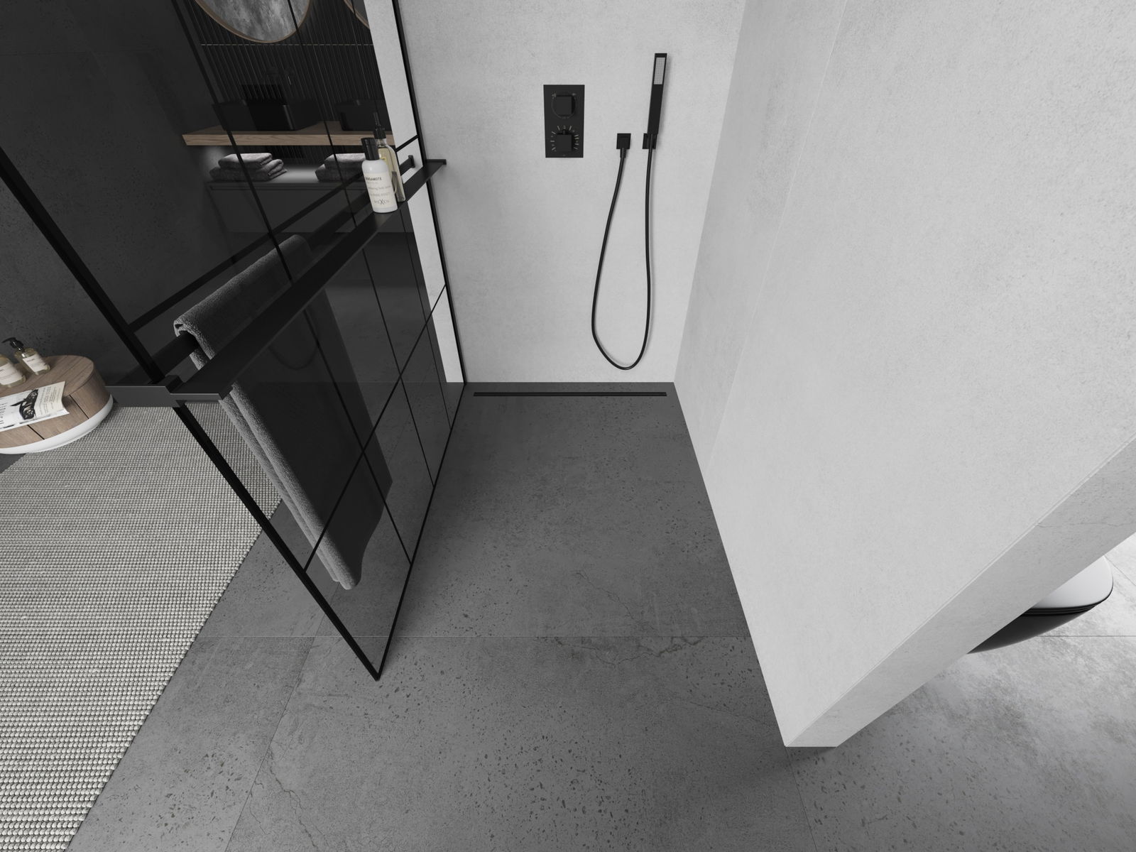 Mexen Kioto+ dušo sienelė su lentyna Walk-in 140 x 200 cm, juodas tinklelis, juoda - 800-140-121-70-77