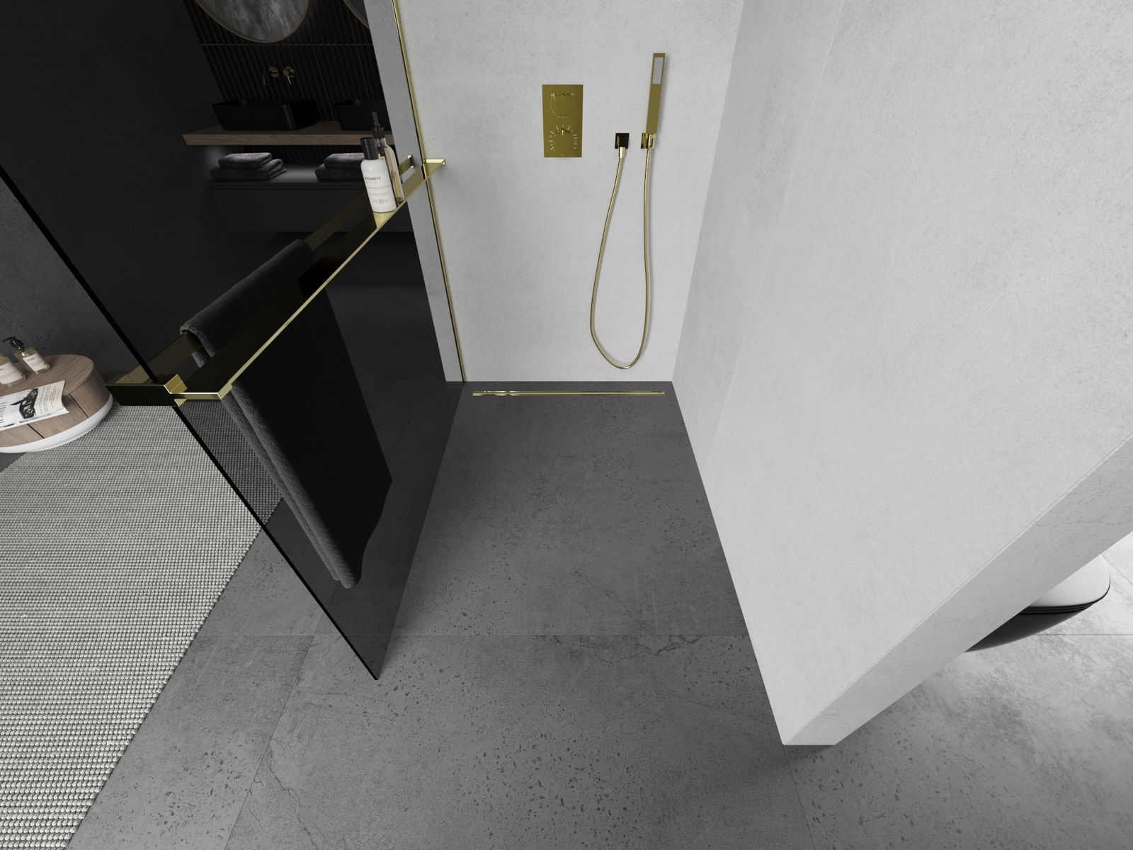 Mexen Kioto+ dušo siena su lentyna Walk-in 70 x 200 cm, grafitas, auksinė - 800-070-121-50-40