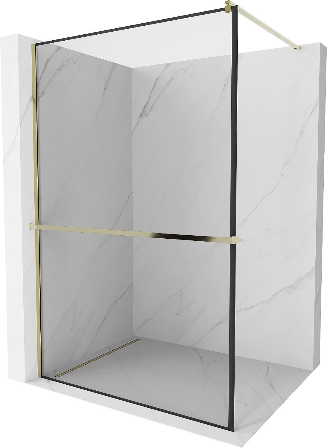 Mexen Kioto+ dušo siena su lentyna, 90 x 200 cm, juodas rėmelis, auksinė - 800-090-121-50-70