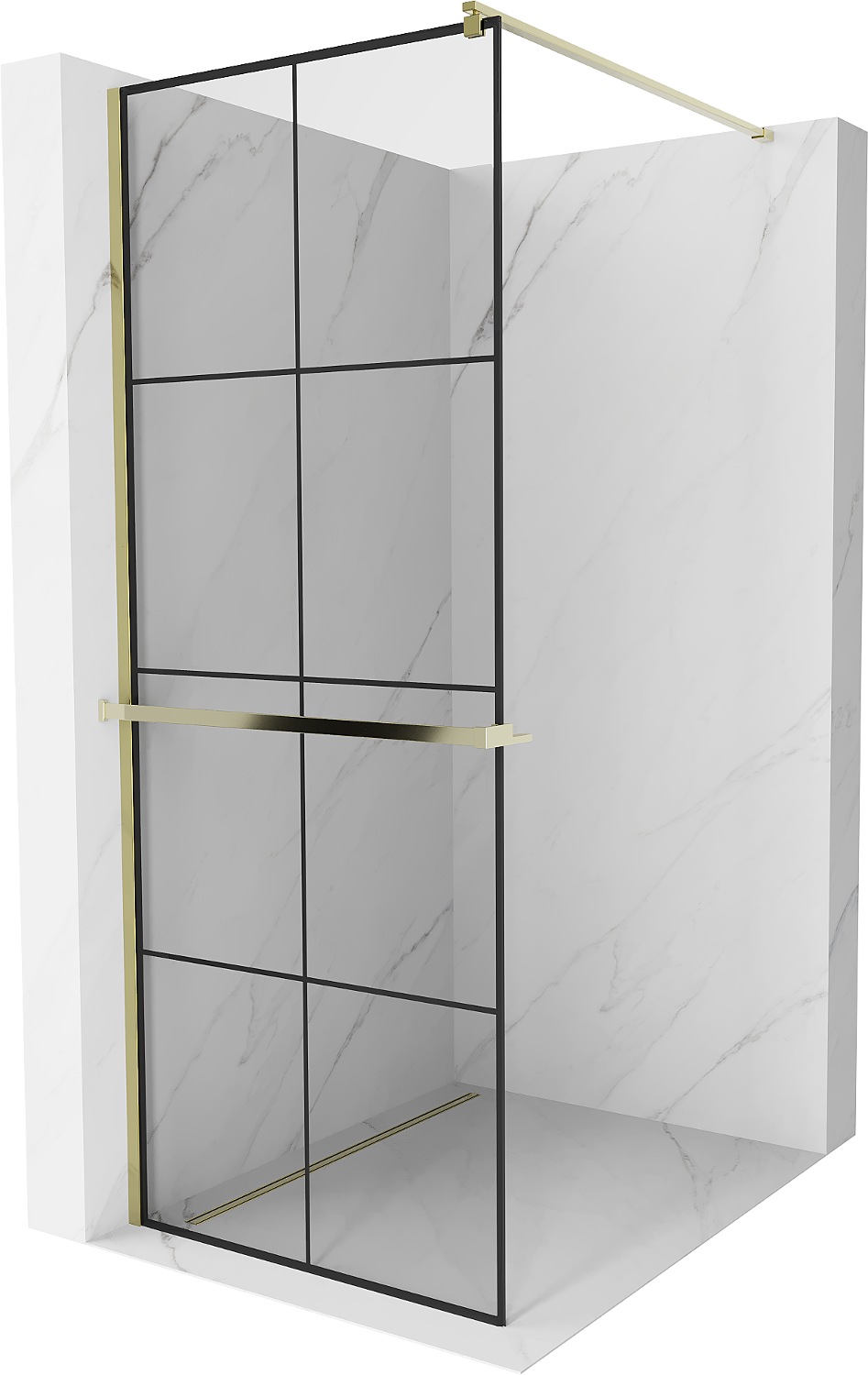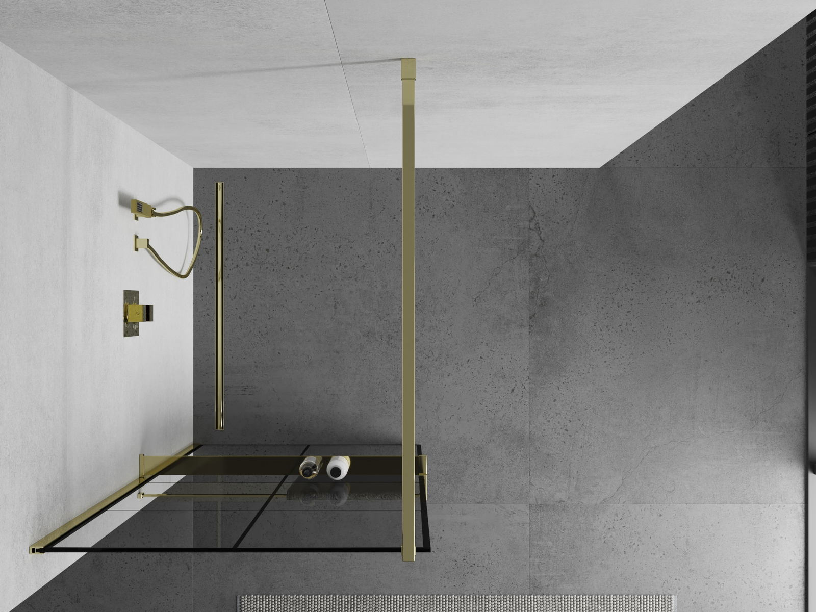 Mexen Kioto+ dušo siena su lentyna Walk-in 80 x 200 cm, juodas tinklelis, auksinė - 800-080-121-50-77