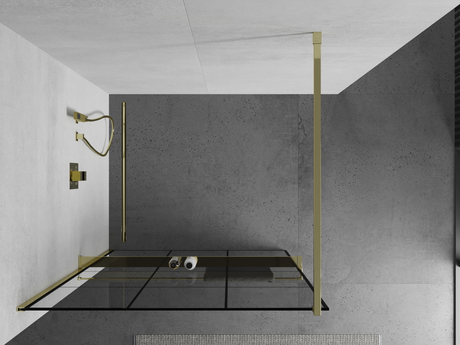 Mexen Kioto+ dušas siena su lentyna "Walk-in" 100 x 200 cm, juodas tinklelis, auksinis - 800-100-121-50-77