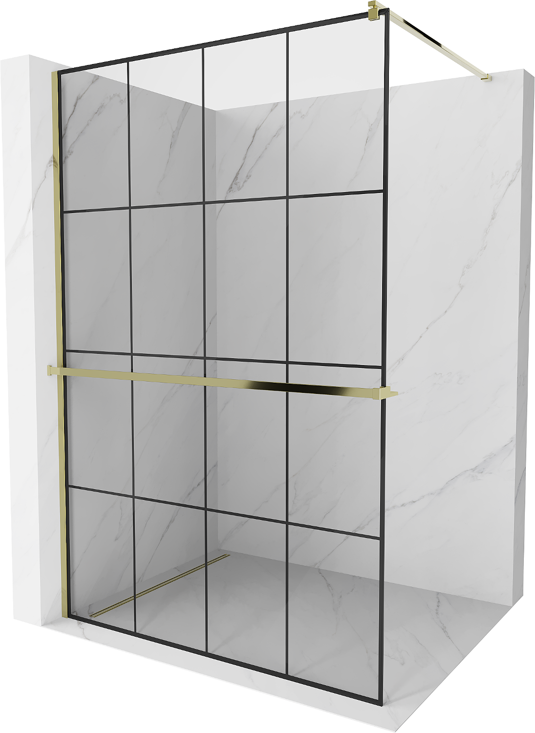 Mexen Kioto+ dušo sienelė su lentyna Walk-in 140 x 200 cm, juodas tinklelis, auksinė - 800-140-121-50-77