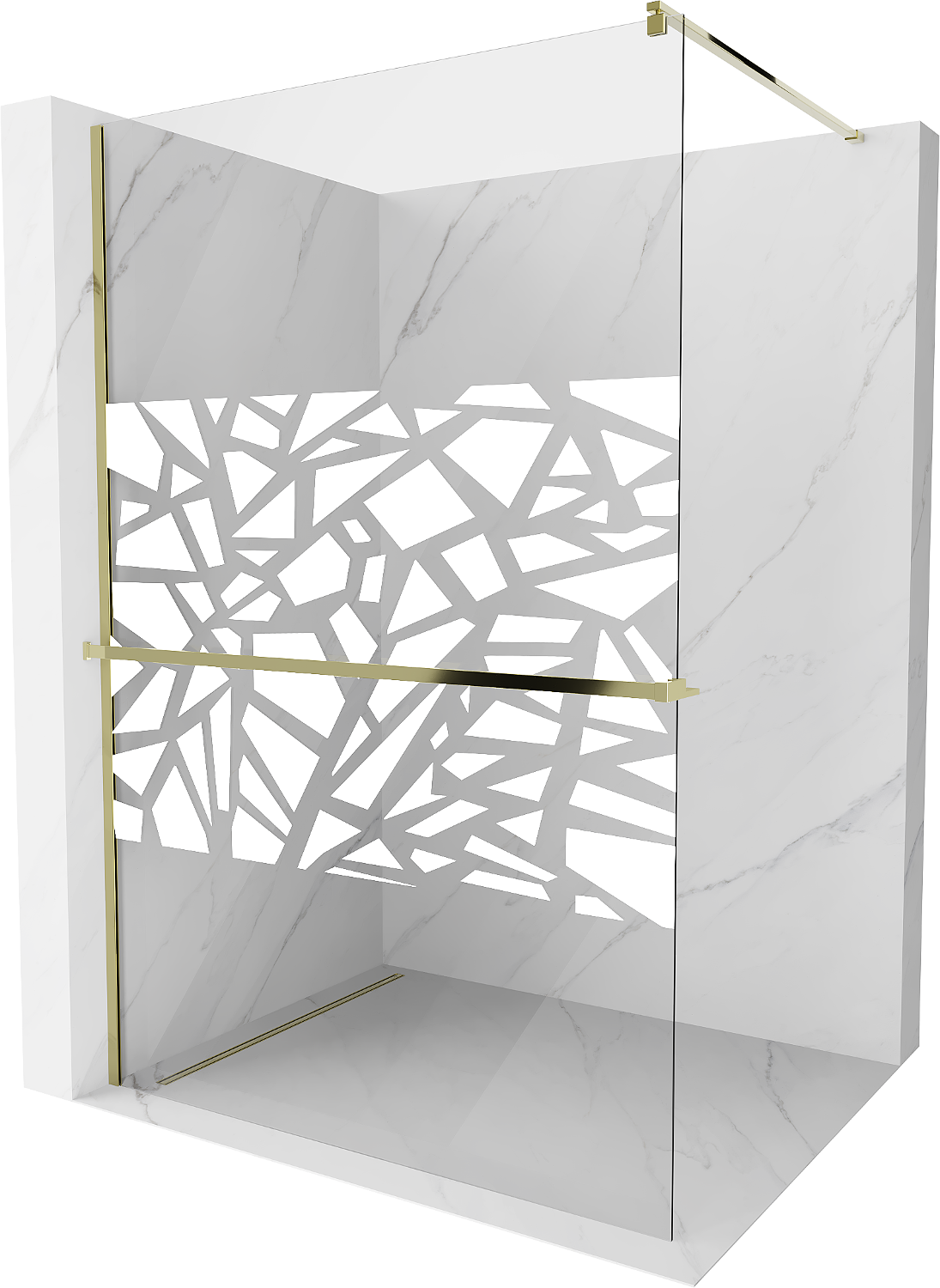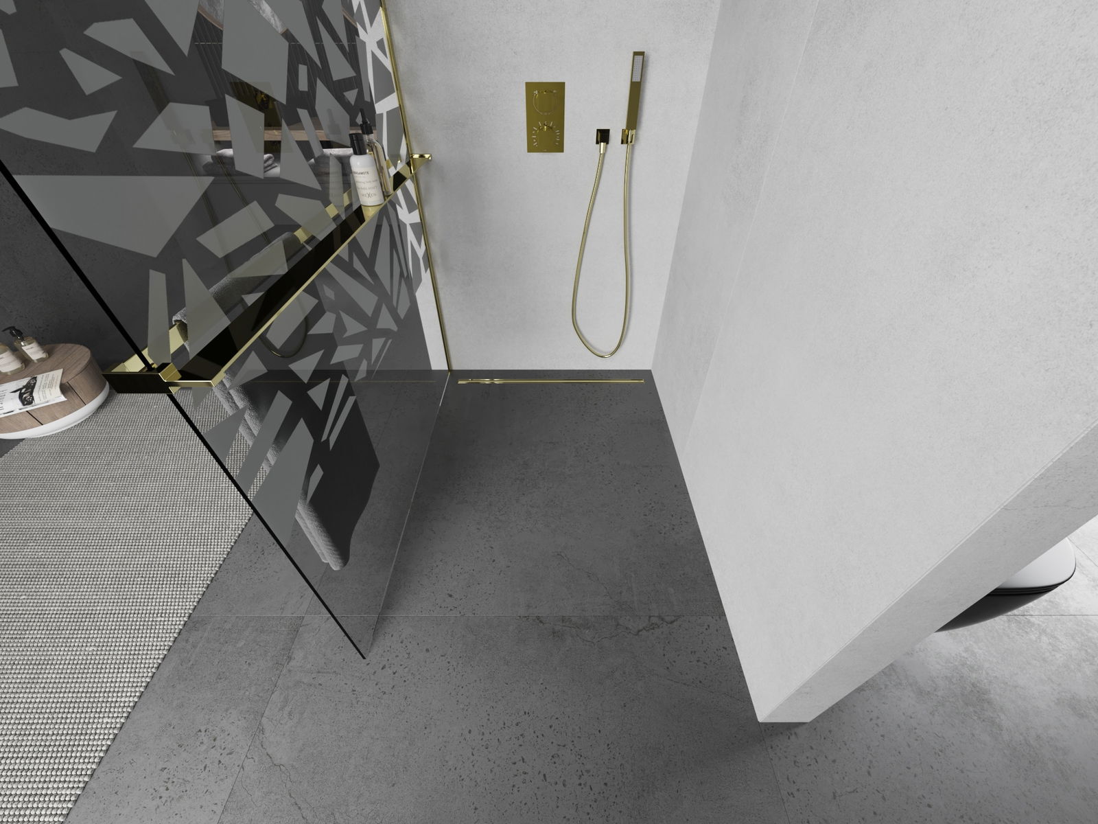 Mexen Kioto+ dušo sienelė su lentyna Walk-in 70 x 200 cm, baltas raštas, auksinė - 800-070-121-50-85