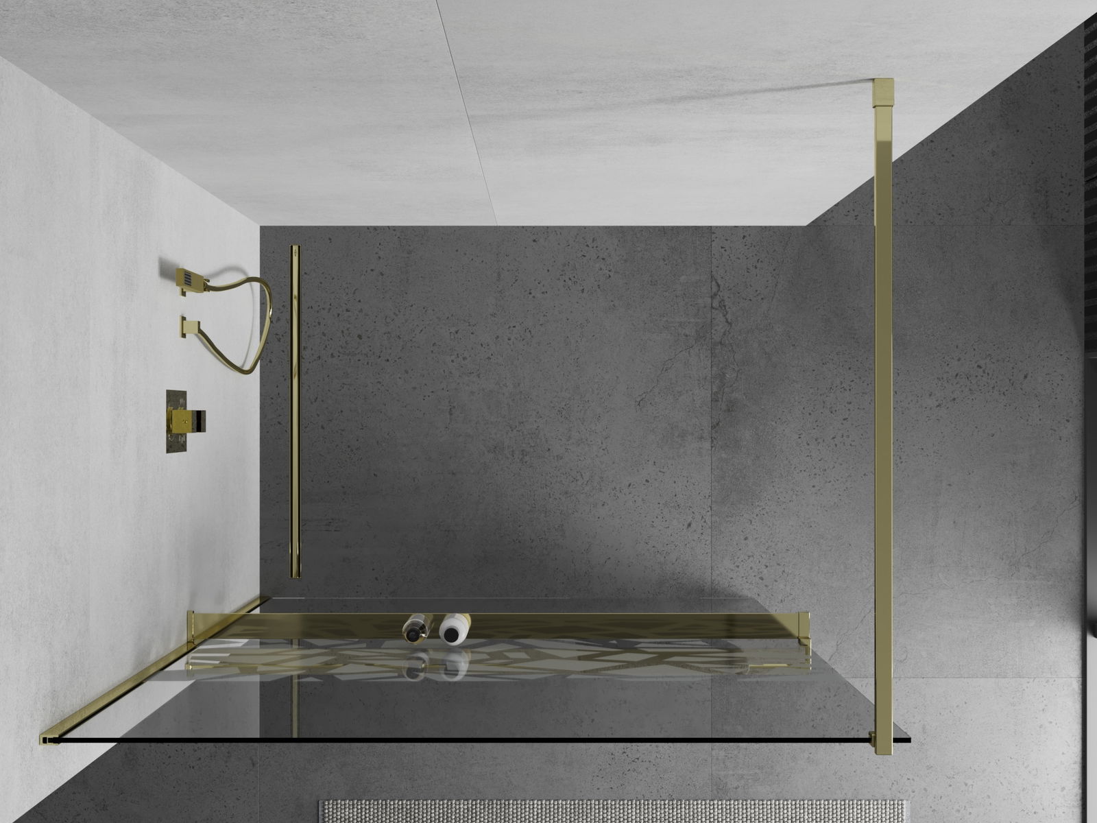 Mexen Kioto+ dušo siena su lentyna Walk-in 120 x 200 cm, baltas raštas, auksinė - 800-120-121-50-85